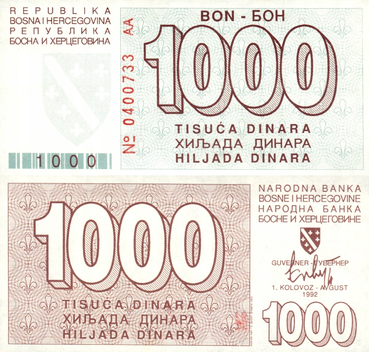 BOŚNIA I HERCEGOWINA / OBLĘŻENIE SARAJEWA - 1000 DINARÓW