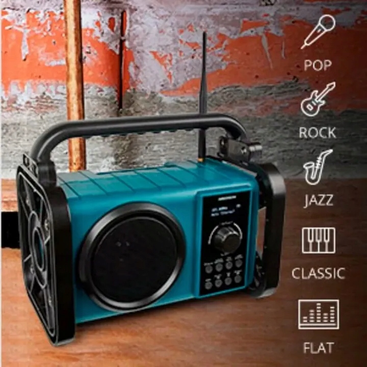 Dzięki pięciu ustawieniom dźwięku Twoja ulubiona muzyka brzmi idealnie. Wybieraj pomiędzy muzyką płaską, klasyczną, popem, rockiem i jazzem, w zależności od tego, który z nich najlepiej pasuje do Twojego gatunku muzycznego. W ten sposób ustawienia radia budowlanego są optymalnie dostosowane.