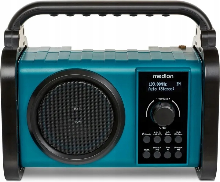 Niezależnie od tego, czy biwakujesz w lesie, nad stawem, czy ciężko pracujesz na placu budowy - słuchaj ulubionej muzyki w dowolnym miejscu dzięki wytrzymałemu radiu MEDION. Dzięki certyfikacji IP44 jest szczególnie wytrzymałe i łatwo znosi kontakt z piaskiem, czy bryzgającą wodą. Radio nie pozostawi Cię w ciemności, ponieważ ma światło robocze LED i jest gotowe do użycia w każdej chwili. Można go zasilać z sieci lub za pomocą wbudowanej baterii litowo-jonowej, która zapewnia do 10 godzin odtwarzania muzyki.