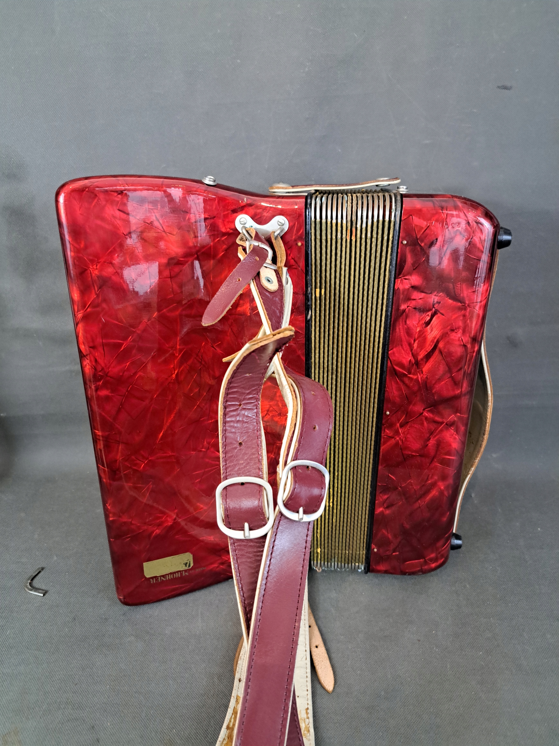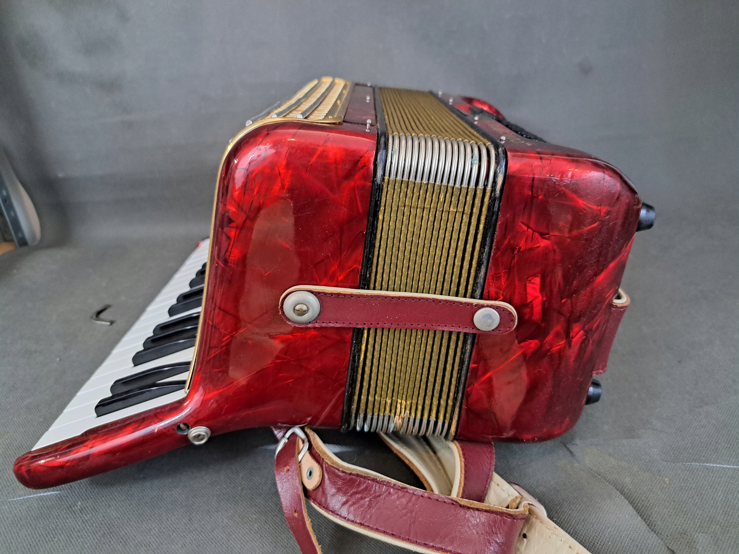 Instrument jest sprawny ale miech wymaga uszczelnienia.