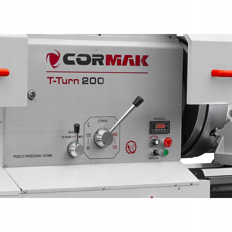 CORMAK T-TURN 200 to solidna tokarka uniwersalna do metalu, zaprojektowana z myślą o precyzyjnej obróbce rur oraz dużych detali cylindrycznych. Maszyna wyróżnia się wyjątkową sztywnością konstrukcji, dużym momentem obrotowym oraz przelotem wrzeciona o imponującej średnicy 200 mm, co czyni ją doskonałym rozwiązaniem dla zakładów przemysłowych, firm remontowych i produkcyjnych.