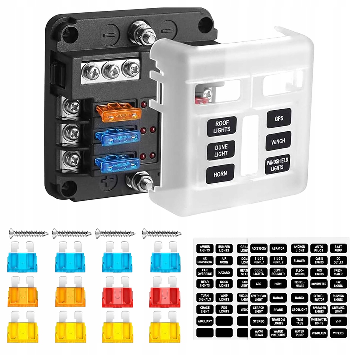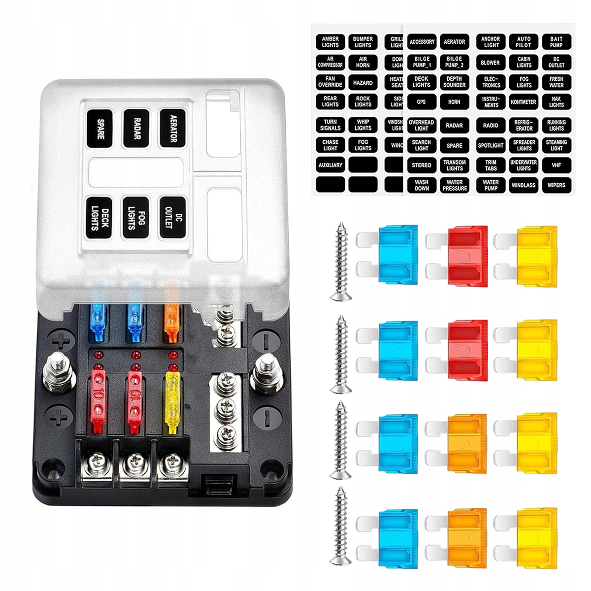 🚗【Szerokie Zastosowanie】Nośnik fuzji ma 6 obwodów z diodami LED do szybkiego wyszukiwania usterek – można go używać w samochodach, autobusach, zbiornikach na olej, łodziach, statkach, ciężarówkach, SUV-ach, jachtach, kamperach itp.