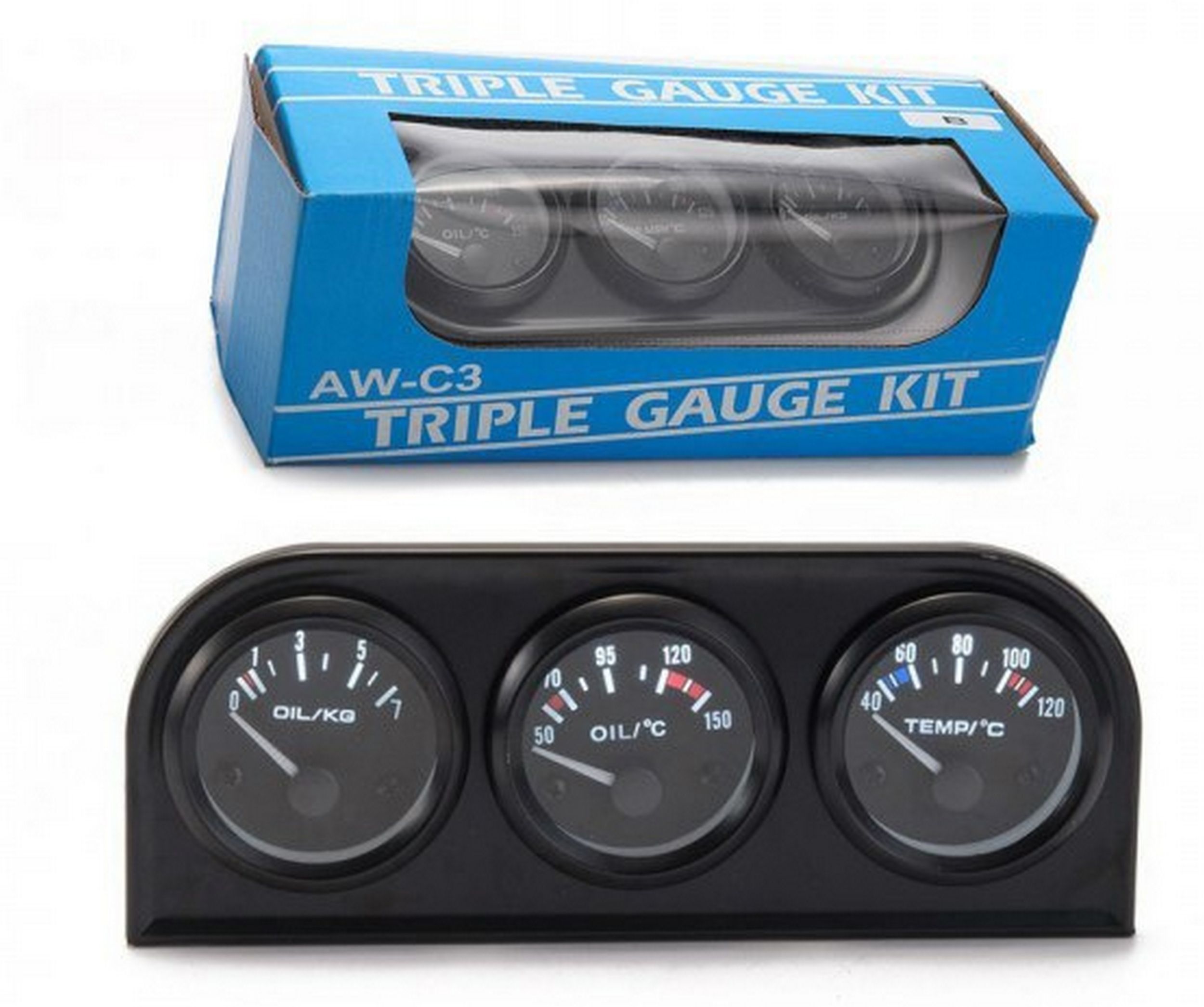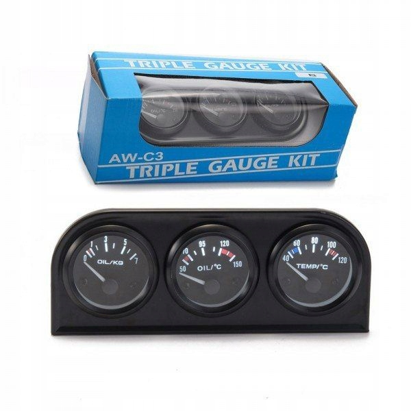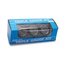 Zestaw zegarów z serii KET, charakteryzują się klasyczną stonowaną stylistyką która będzie pasowała do każdego kokpitu. Wskaźniki posiadają białe podświetlenie. Jest to świetna oferta cenowa biorąc pod uwagę, że zestaw zawiera trzy zegary oraz wszystkie niezbędne czujniki do jego uruchomienia. Wskaźniki można również zdemontować z dołączonej do zestawu ramki - posiadają 52mm średnicę montażową.