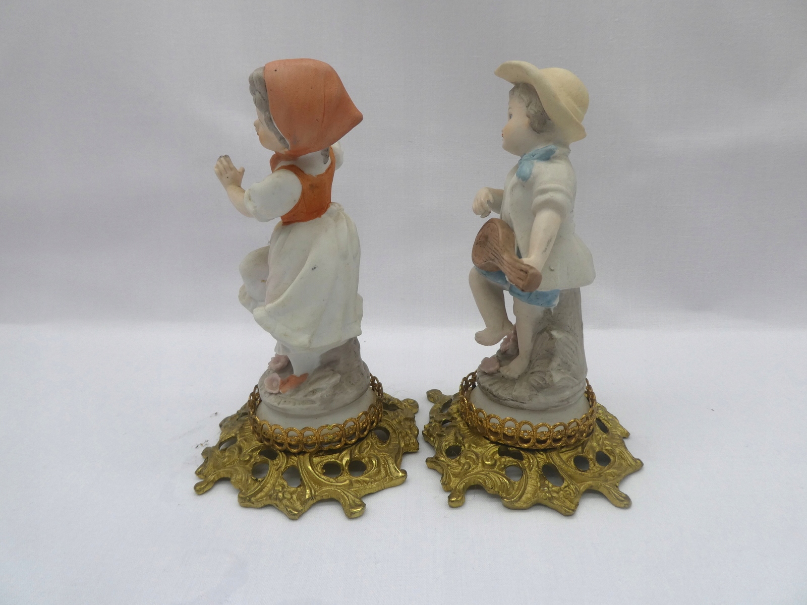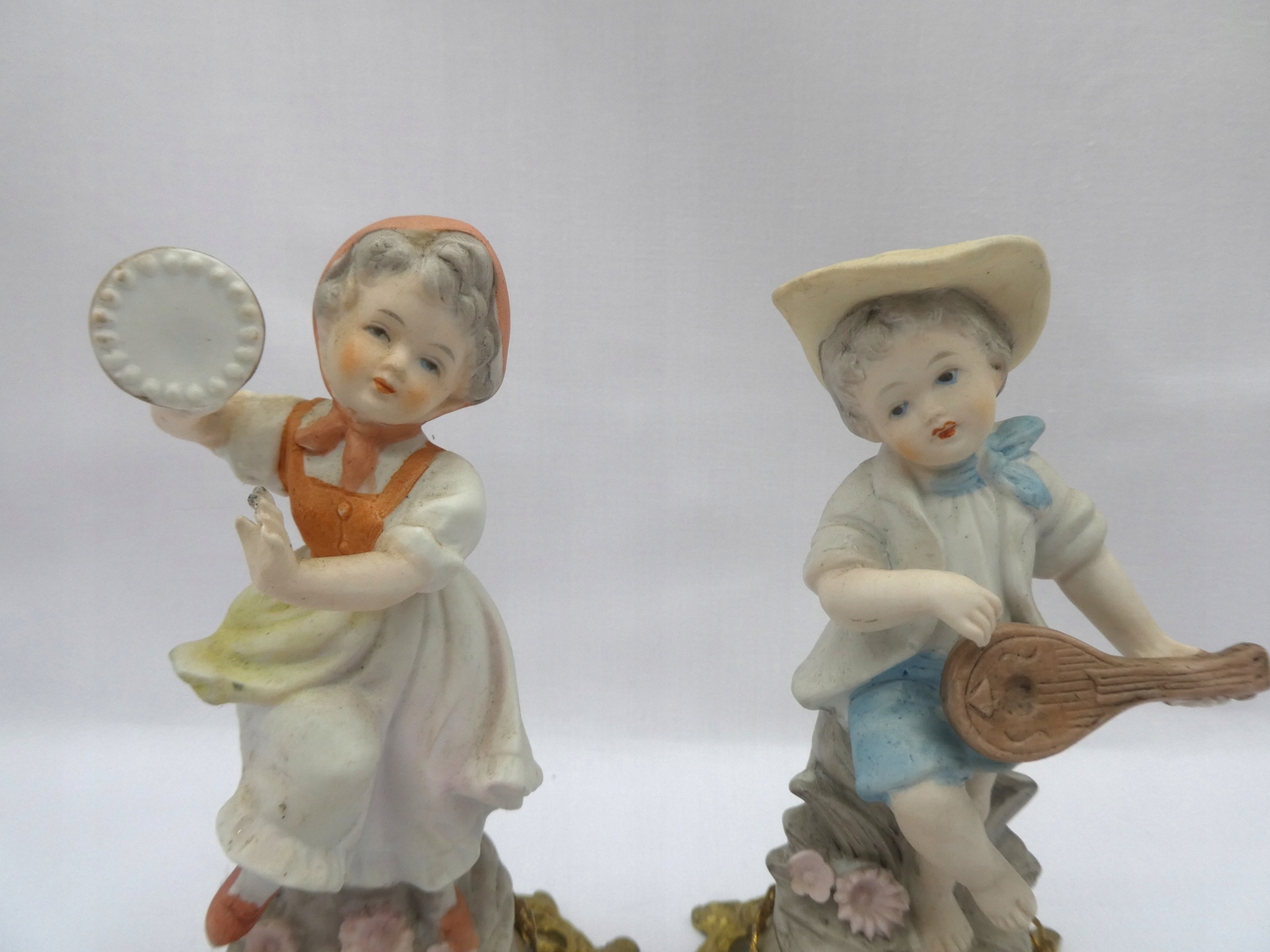 PRZEDMIOTEM TEJ AUKCJI JEST PIĘKNA OZDOBA KOMPLET DWÓCH PIĘKNYCH FIGUREK -PARA-CHŁOPIEC I DZIEWCZYNKA NA METALOWYM POSTUMENCIE
