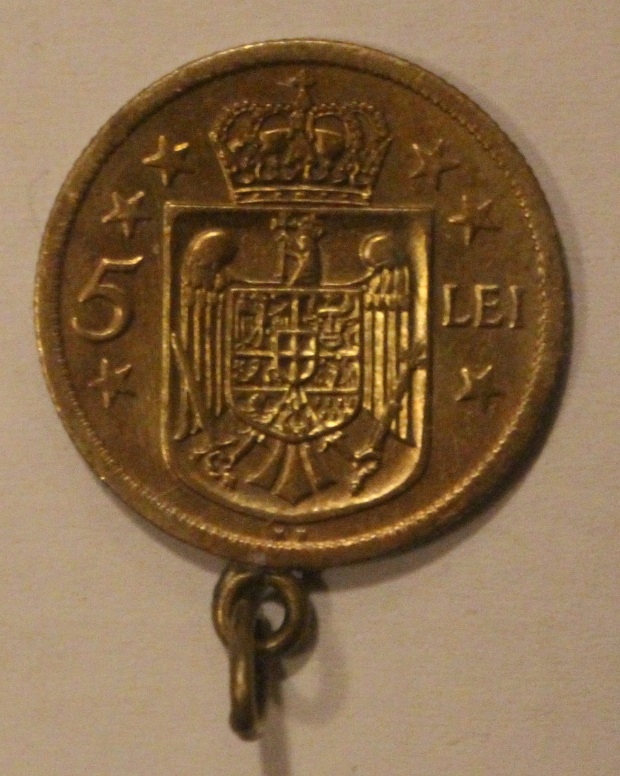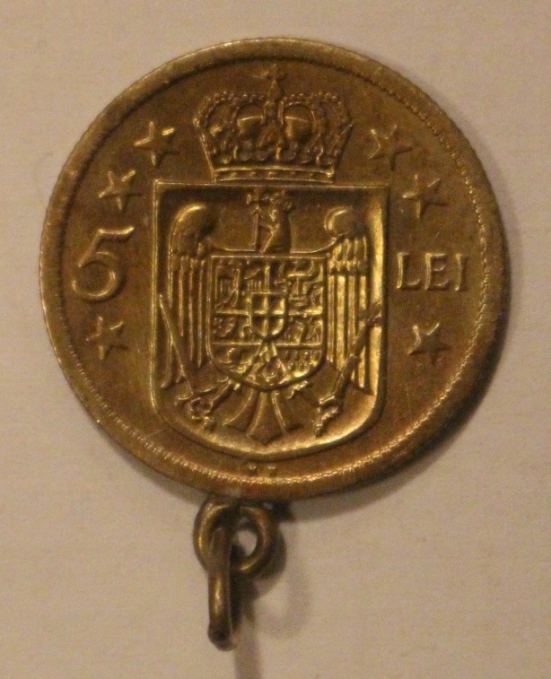 Название 5 LEI - LEJ 1930 RUMUNIA - CIEKAWA, STARA, Z PRZYWIESZKĄ NA ŁAŃCUSZEK