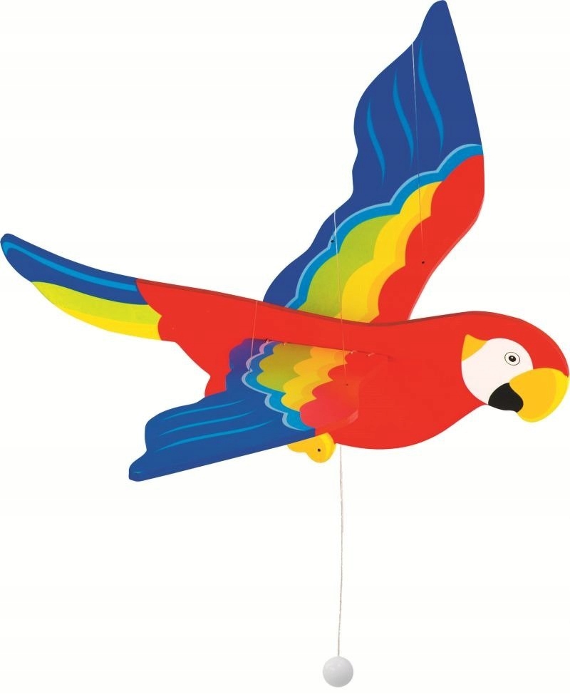 Wystarczy, że pociągnie za zwisający u dołu sznurek, a ptaszek radośnie zamacha skrzydełkami. Świetna zabawa gwarantowana!Rozpiętość skrzydeł: 50 cm