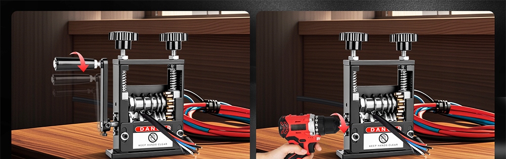 ✅ Dostępna w trybie elektrycznym i ręcznym. Tryb ręczny pozwala na wygodną obsługę. Można ją również podłączyć do wiertarki elektrycznej, aby przyspieszyć zdejmowanie izolacji i zwiększyć wydajność pracy (wiertarka elektryczna nie jest dołączona).