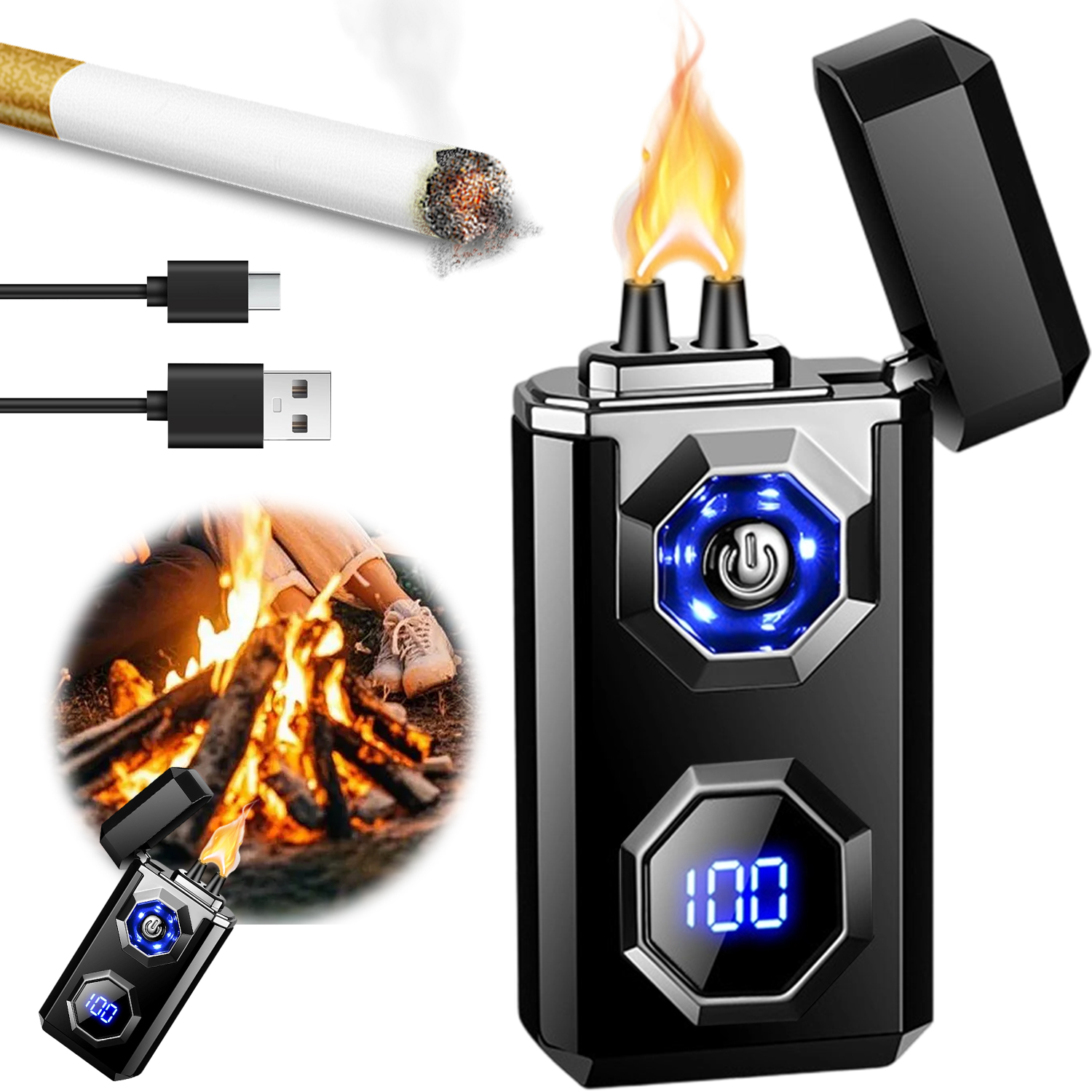 Nowoczesny port USB-C pozwala na ładowanie w zaledwie 45 minut. Możesz ładować zapalniczkę z powerbanka, laptopa lub gniazdka ściennego. BEZ BUTANU, BEZ ODPADÓW - przyjazna środowisku!