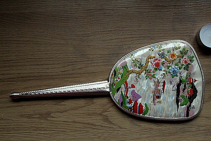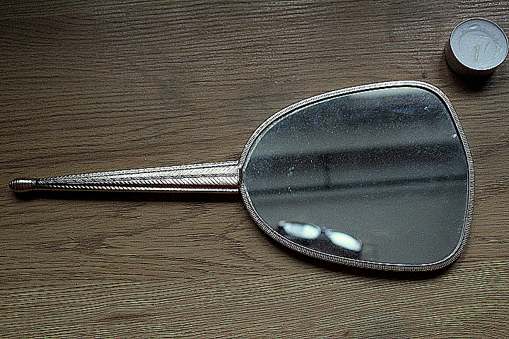 ZESTAW SKŁADA SIĘ: SZCZOTKA,KRYSZTAŁOWE LUSTERKO, UCHWYTY I OBRĘCZE-CIENKI METAL,