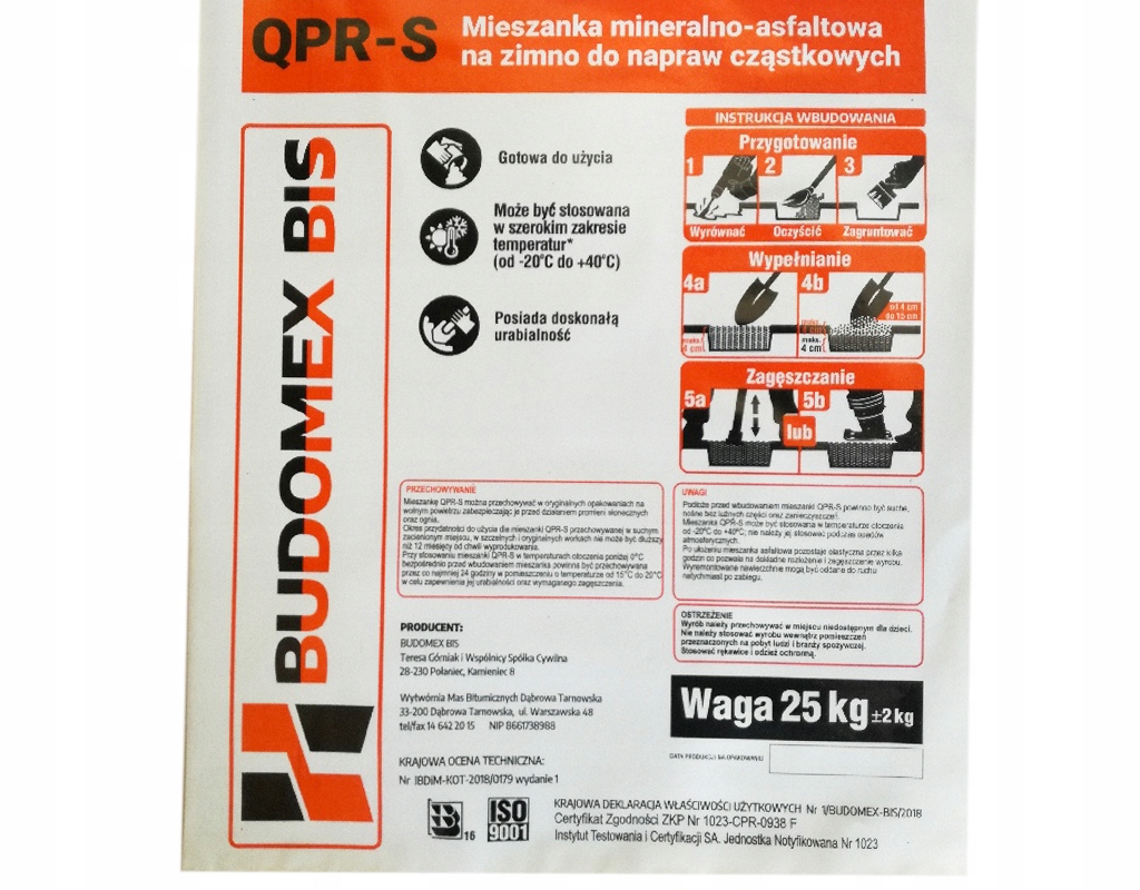 Mieszanka mineralno bitumiczna QPR-S służy do napraw powierzchni drogowej. Asfalt w workach na zimno skutecznie poradzi sobie z ubytkami w nawierzchni: