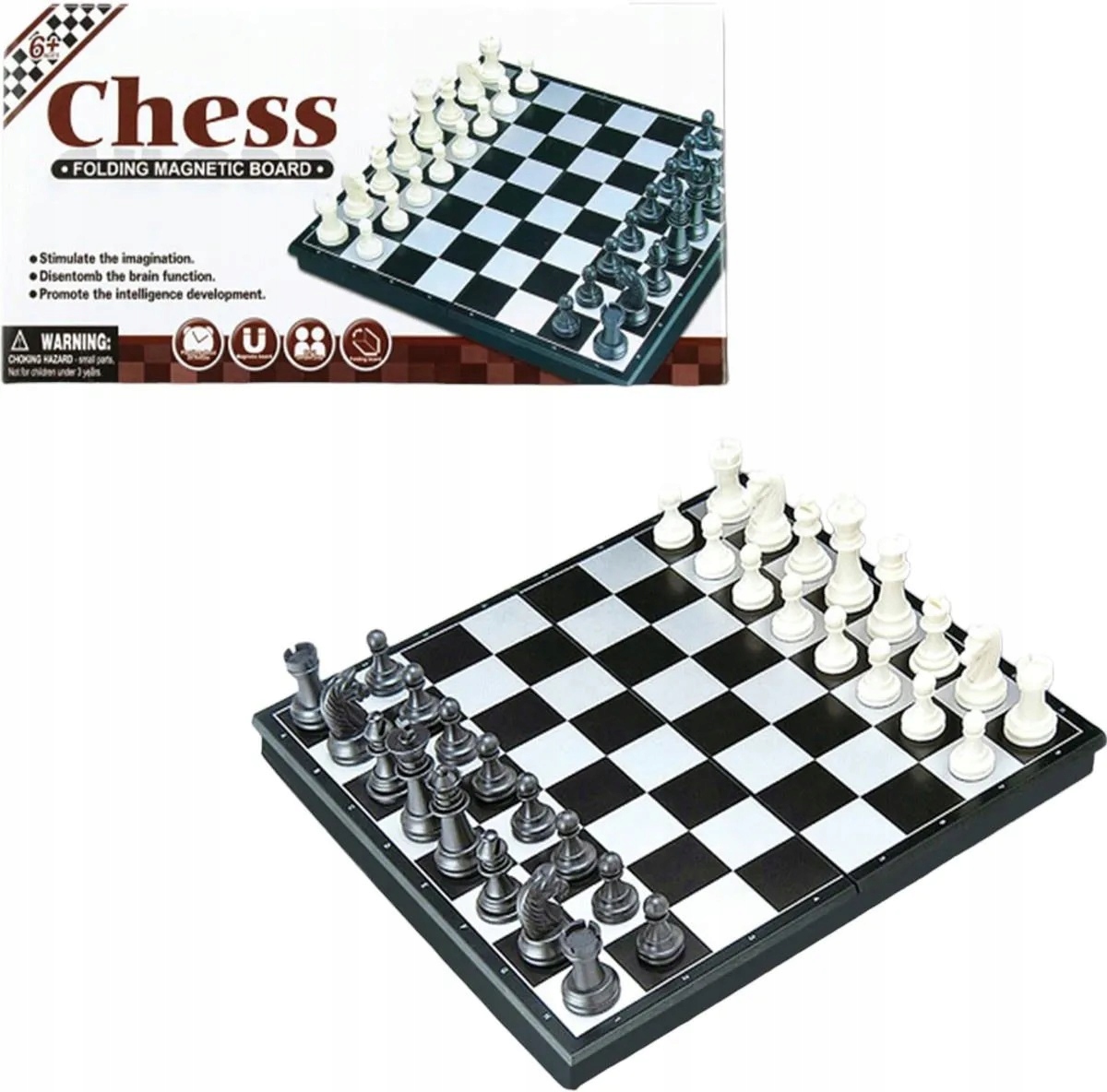 Magnetyczna plansza do gry pełni dodatkowo rolę pudełka na pionki.