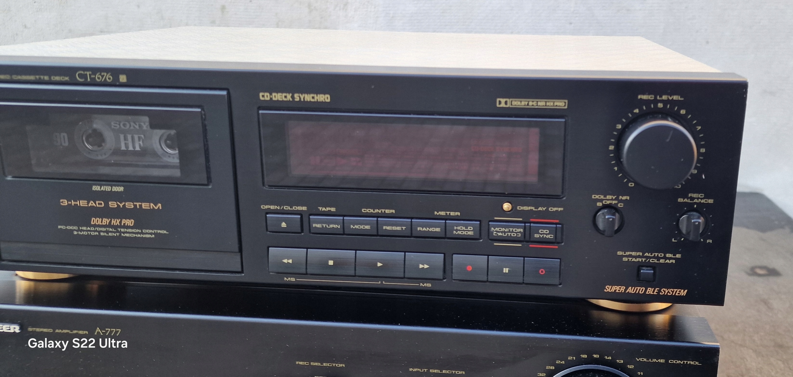 Magnetofon kasetowy Pioneer ct 676 , uzywany ,sprawny , wymienione pasy. Nagrywa ,odtwarza i przewija bez problemow. Optycznie jak na foto, poprzedni właściciel obkleił folią imitującą blachę ryflowaną. Equalizer i wzmacniacz z foto nie są przedmiotem tej oferty.