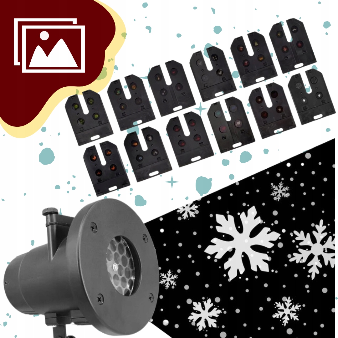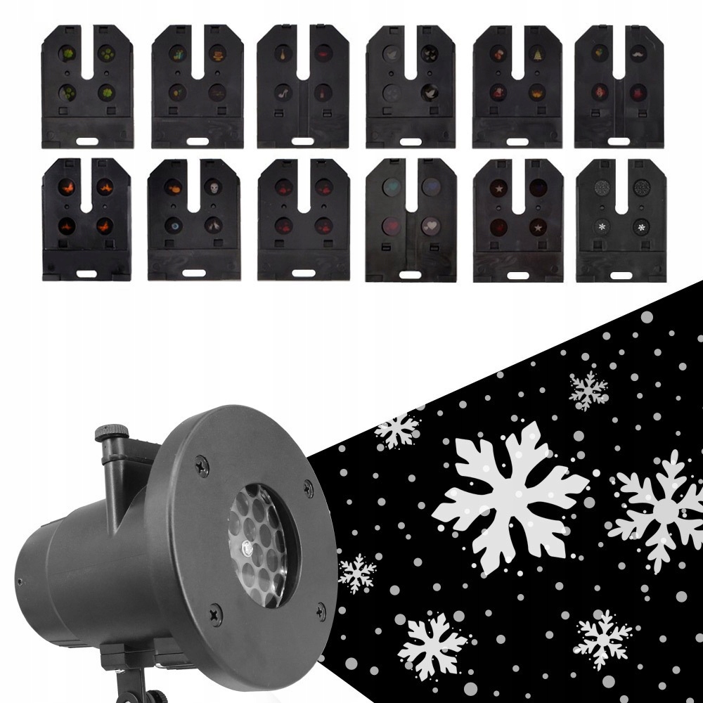 ➡️Nasz projektor LED oferuje aż 12 zestawów slajdów (łącznie 48 unikalnych wzorów), które doskonale pasują do różnych świąt i wydarzeń. Dzięki niemu możesz wyświetlić świąteczne motywy takie jak:
