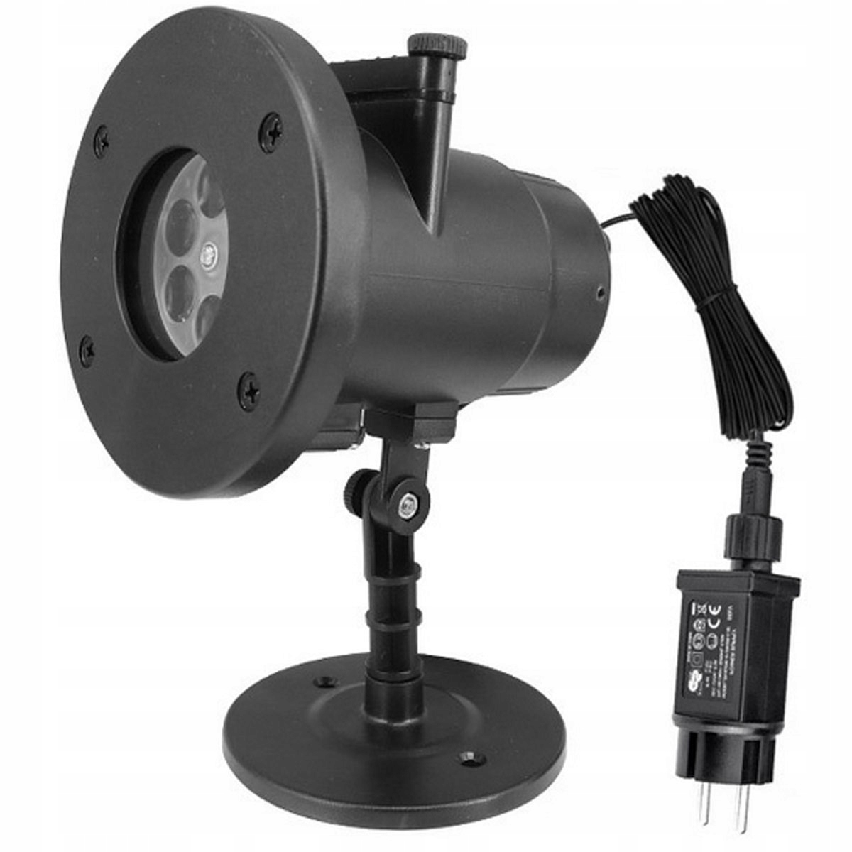 Projektor LED jest wyposażony w uniwersalne mocowanie, które umożliwia montaż na wbijanym trzonku lub na stabilnej podstawce z otworami na śruby. To rozwiązanie pozwala na szybki i łatwy montaż projektora w dowolnym miejscu – na ścianie, płocie, pod sufitem lub w ogrodzie.