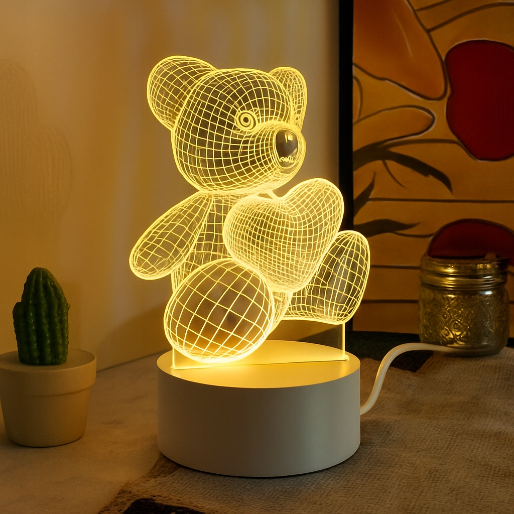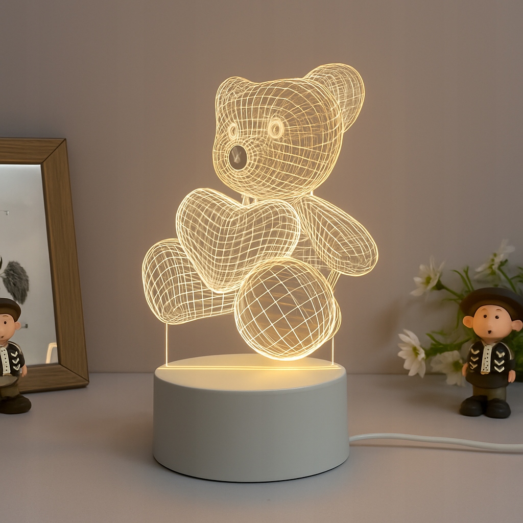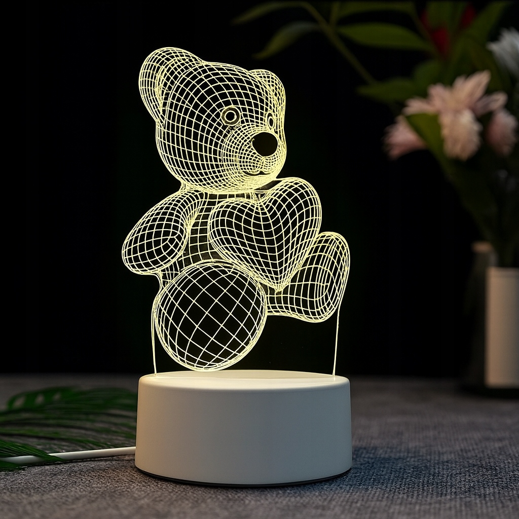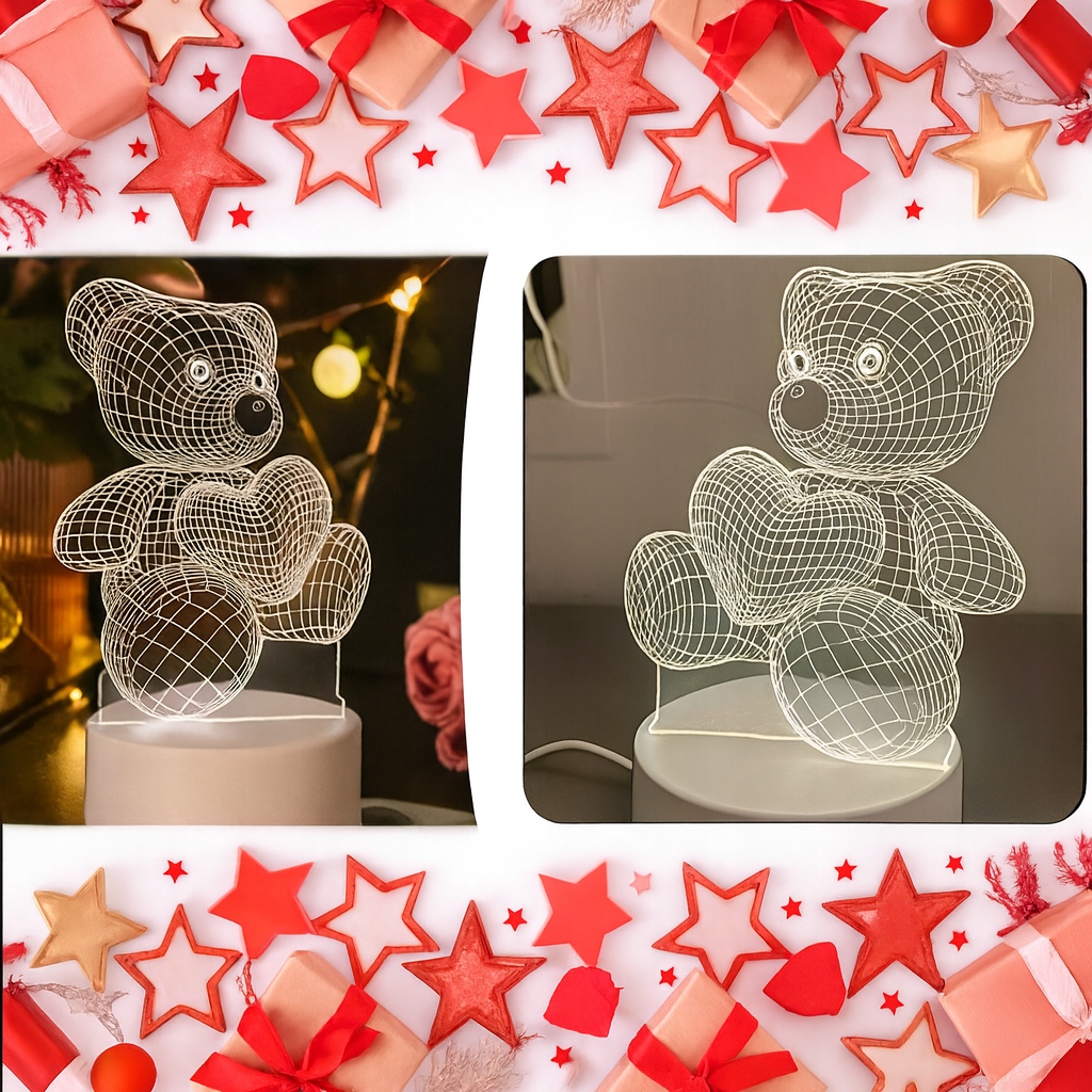 ✨ Odkryj prezent, który wprowadzi magię do każdego pokoju! Nasza Lampka Nocna Miś 3D Illusion to niezwykły, świetlisty dodatek, który zachwyca od pierwszego spojrzenia. Delikatne, trójwymiarowe światło tworzy wyjątkową atmosferę, zamieniając zwykły wieczór w pełen ciepła i wyobraźni moment. To idealna niespodzianka dla dzieci i dorosłych – subtelna, urocza i gotowa, by rozświetlić każdą chwilę.