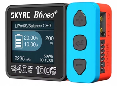 SkyRC B6neo+ to najnowsza, udoskonalona generacja klasycznej serii B6. Ładowarka, pomimo miniaturowych rozmiarów (ok. 1/4 rozmiaru poprzedników), oferuje imponującą moc ładowania, będąc aż 4 razy szybsza niż standardowe modele. Zasilana prądem stałym (DC) za pomocą gniazda XT60 osiąga maksymalną moc 240 W, a dzięki nowoczesnemu wejściu USB Type-C PD 3.1 pozwala na ładowanie z mocą do 126 W. To idealne rozwiązanie dla modelarzy RC i pilotów FPV poszukujących ultrakompaktowej i niezwykle wydajnej ładowarki.