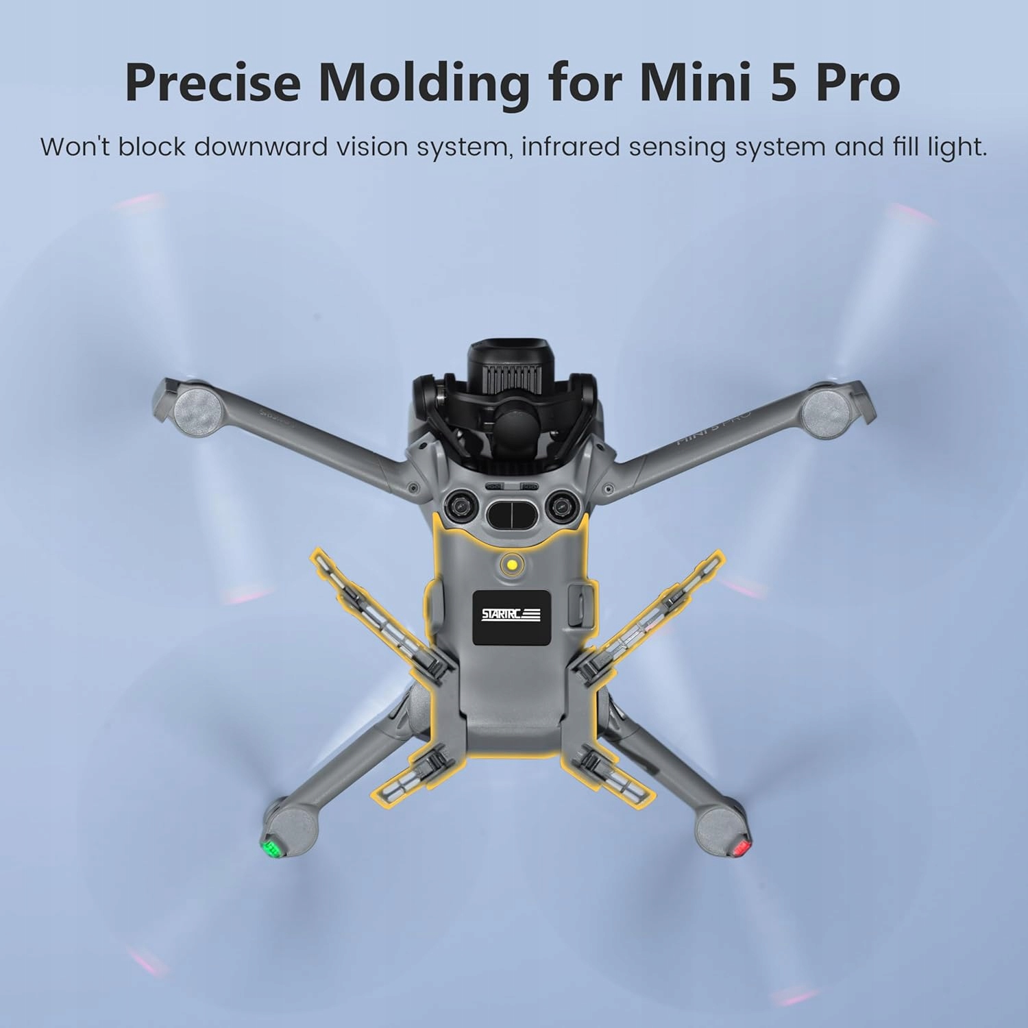 Wysokiej jakości materiały: wykonane z wysokiej jakości i wytrzymałego materiału ABS + PC, wysoka wytrzymałość, dobra wytrzymałość, niewielka waga, całe podwozie waży tylko 27.8 g, lekka konstrukcja nie doda dodatkowego obciążenia dla lotu DJI Mini 5 Pro, nie wpływa na normalny lot