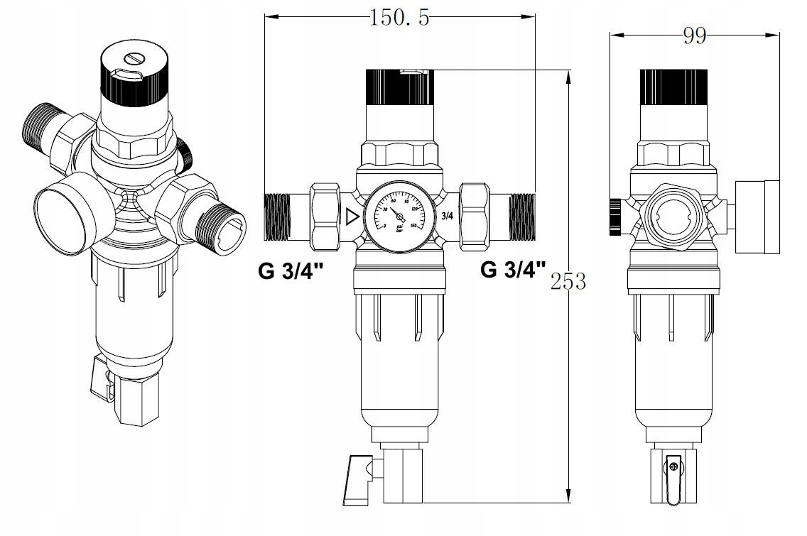 Filtr wstępny montowany standardowo za wodomierzem, usuwa zanieczyszczenia mechaniczne takie jak piasek, rdza, muł, wytrącone związki żelaza, pływające związki organiczne, poprawiając jakość wody i przedłużając żywotność urządzeń AGD i instalacji wodnej.