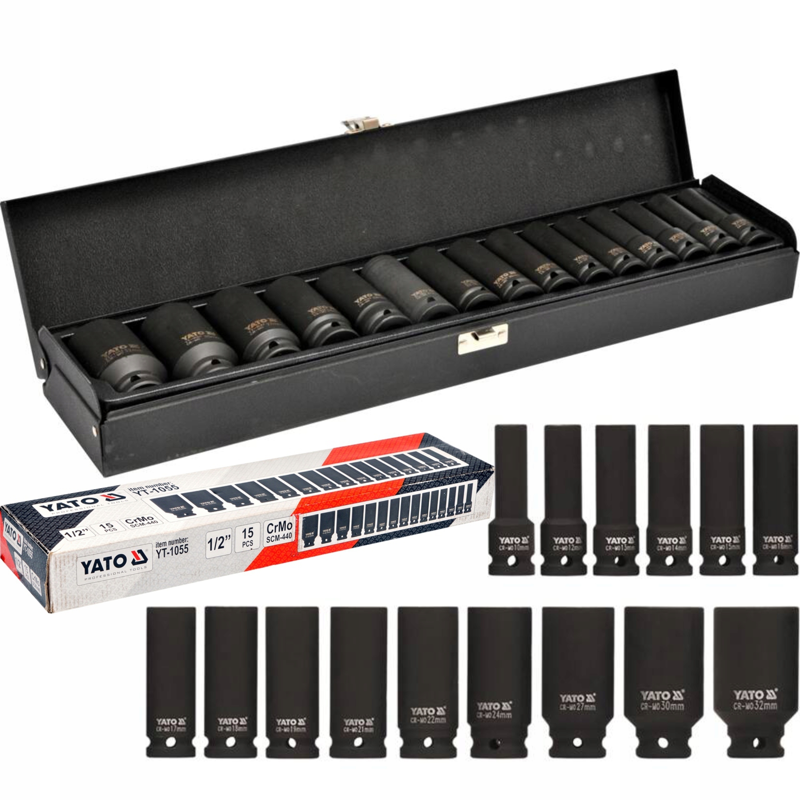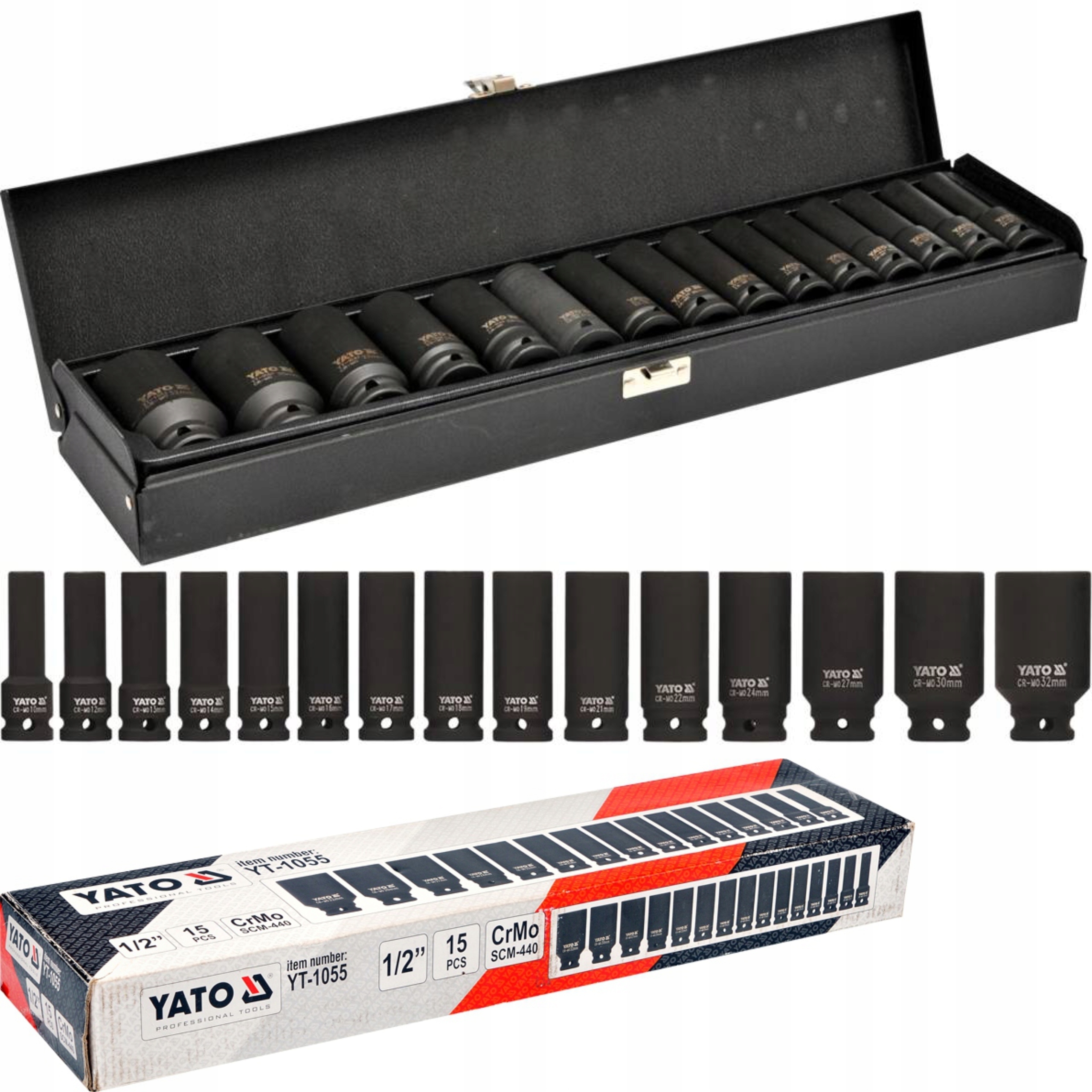 ⭐Nasadki udarowe YATO długie - komplet 15 kluczy nasadowych.