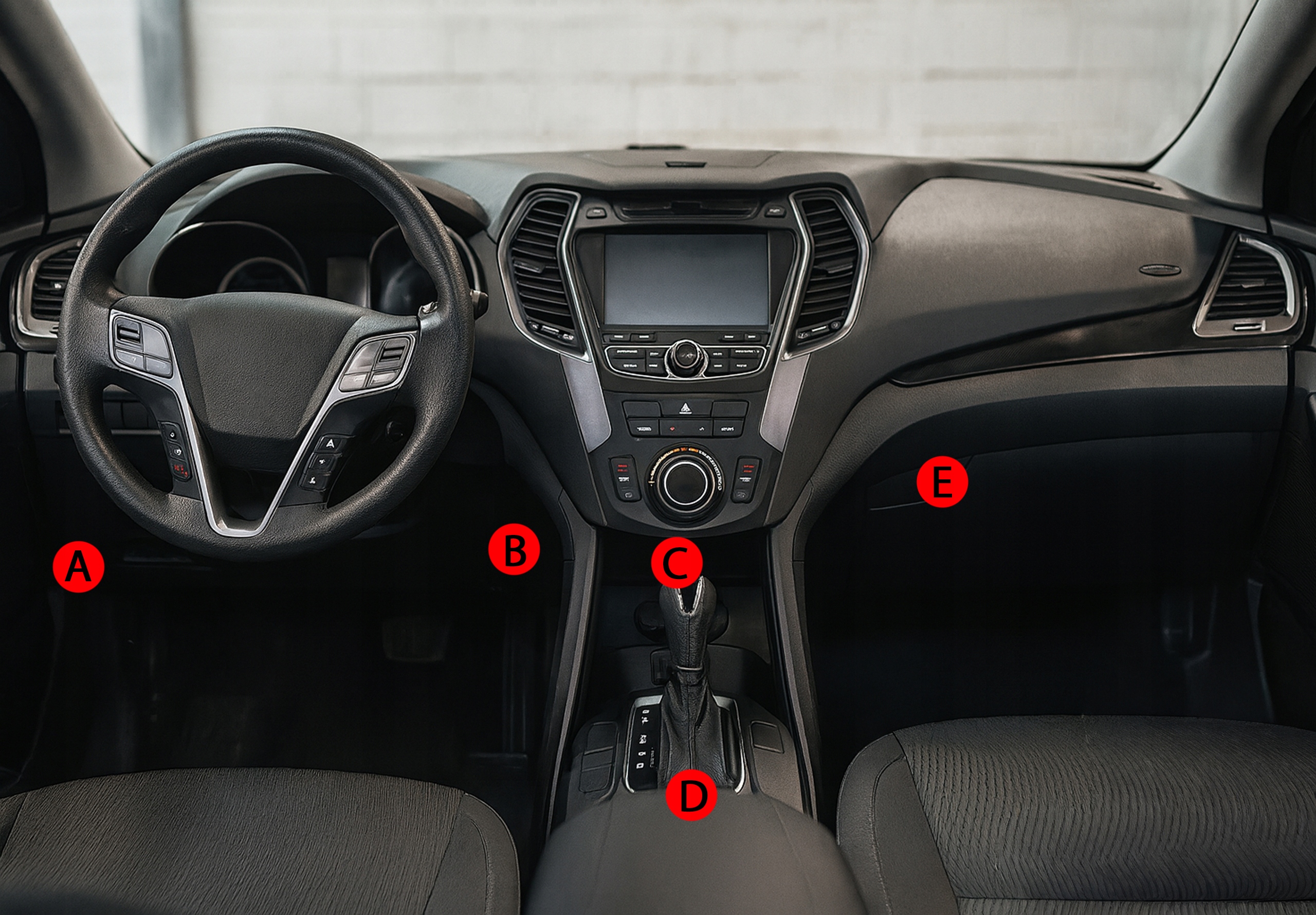Położenie interfejsu OBD różni się w zależności od modelu pojazdu. Zazwyczaj znajduje się na wewnętrznym panelu po lewej stronie pod deską rozdzielczą po stronie kierowcy. W przypadku innych modeli zobacz ilustrację. Po podłączeniu uruchom pojazd.
