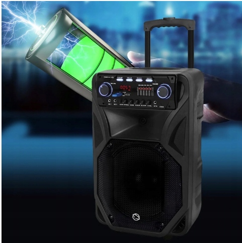 Power Audio fonos оценят все владельцы музыкальные таланты. В комплект входят два входа для микрофона и один для гитары, что позволит вопросы караоке это устройство не имеет себе равных. Он также включает в себя 5-канальный эквалайзер, благодаря который пользователь может настроить звук по своему вкусу. Динамик позволяет беспроводной воспроизведение музыки через bluetooth 5.0 в диапазоне до 10 м, поэтому воспроизведение музыки с устройства портативный будет еще проще.