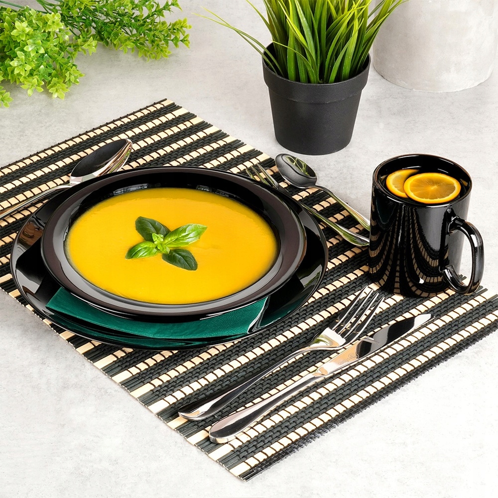 ✅ Wykonane ze szkła opalowego – Wszystkie elementy zestawu wykonano z wysokiej jakości szkła opalowego w klasycznym czarnym kolorze. Szkło opalowe przypomina wyglądem porcelanę i jest odporne na temperaturę do +100°C. Odpowiednio użytkowane posłuży przez długi czas.