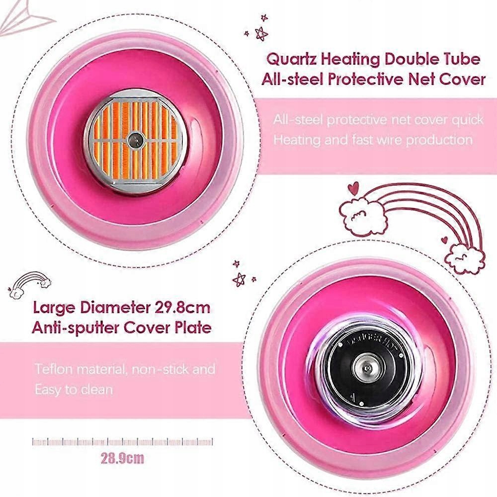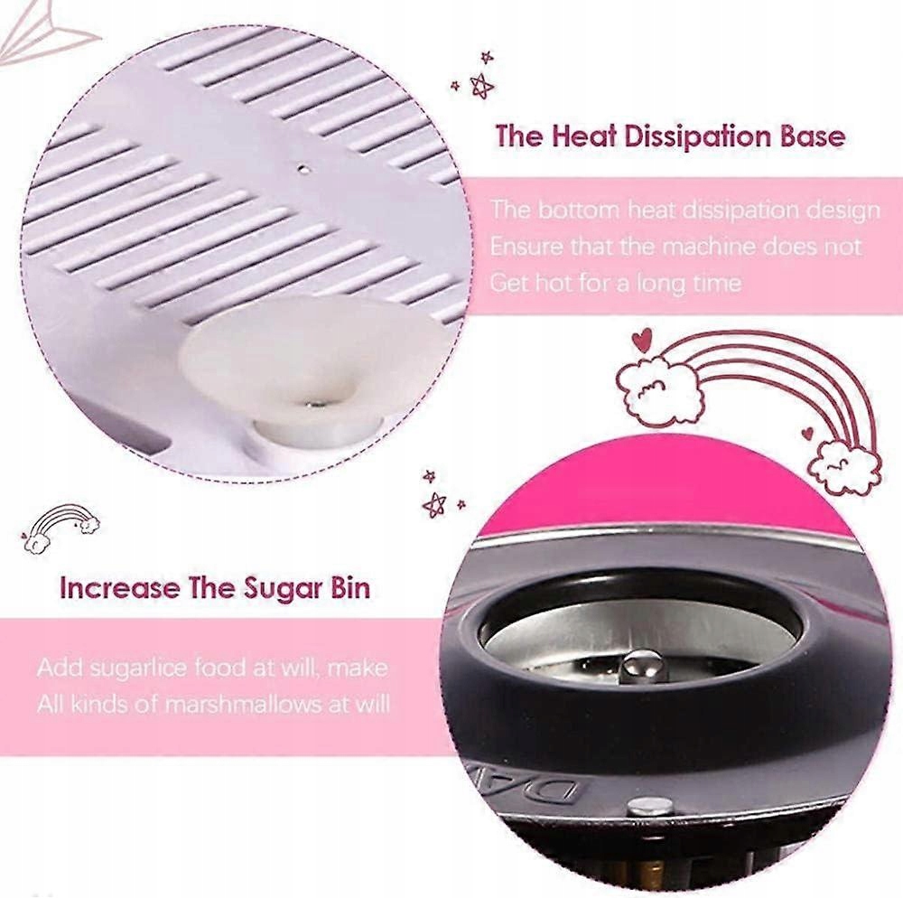 Duża pojemność: kosz na cukier karuzelowy został powiększony i zmodernizowany, co może umieścić więcej cukru, a cząsteczki cukru nie będą się rozpryskiwać podczas użytkowania. Wystarczy podłączyć go do gniazda, odczekać 5 minut, aby się rozgrzać, i można zrobić pianki.