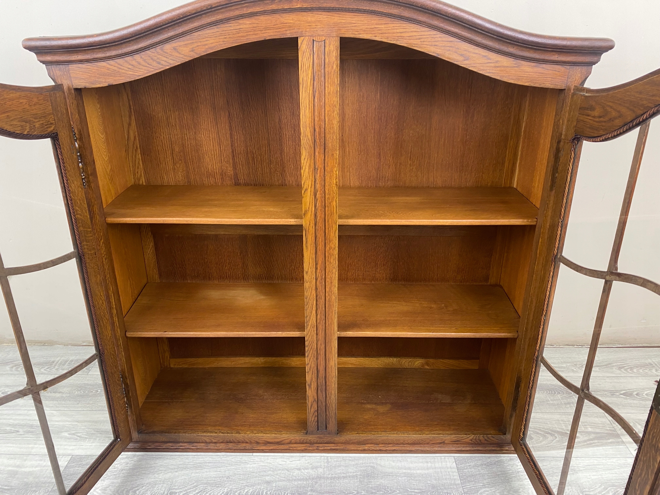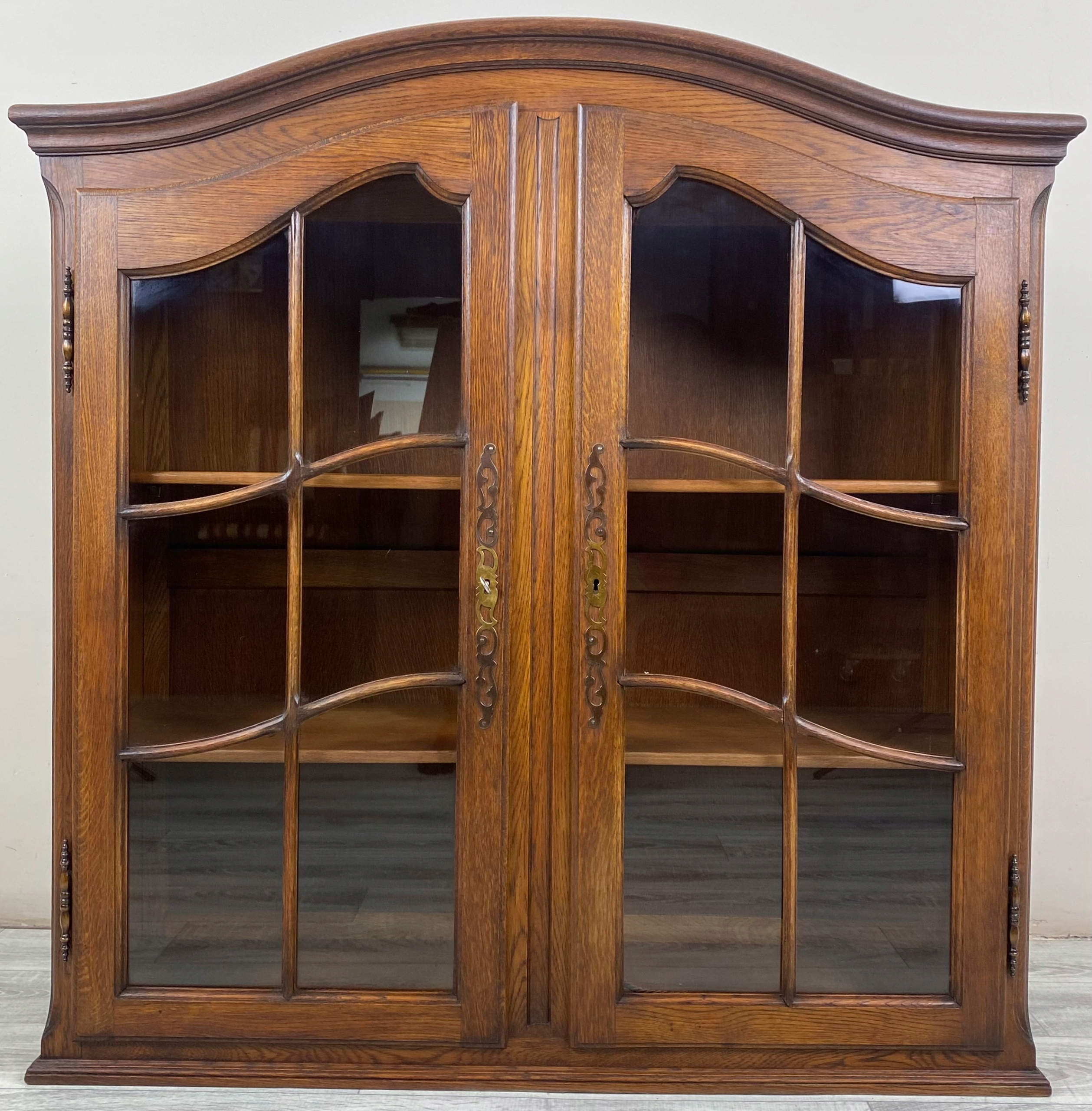 Witrynka posiada dwa uchylne fronty. Wewnątrz półki.
