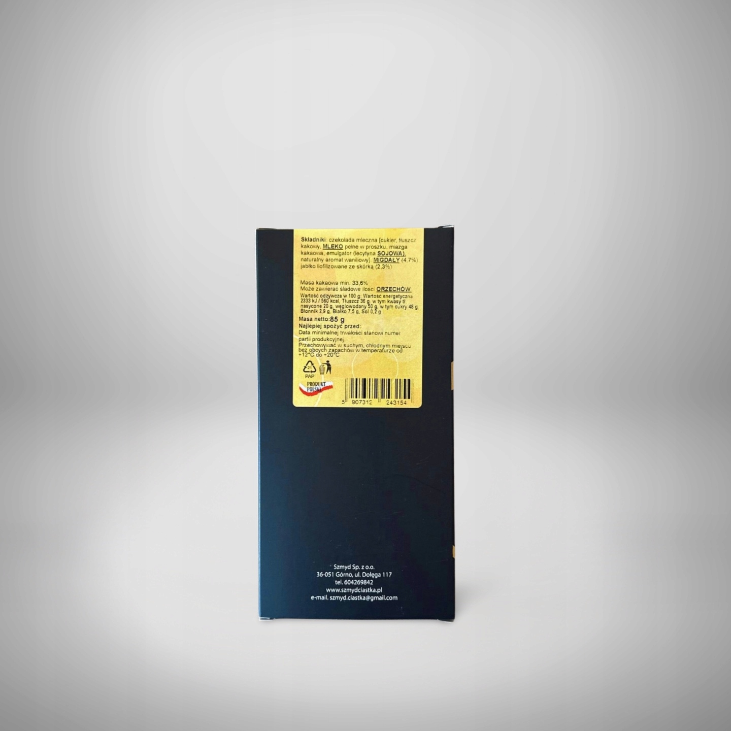 Poznaj wyjątkową tabliczkę, która łączy mleczną czekoladę z chrupiącymi migdałami i aromatycznymi kawałkami liofilizowanego jabłka. To idealna propozycja dla miłośników słodkich, naturalnych smaków oraz ręcznie tworzonych słodyczy.