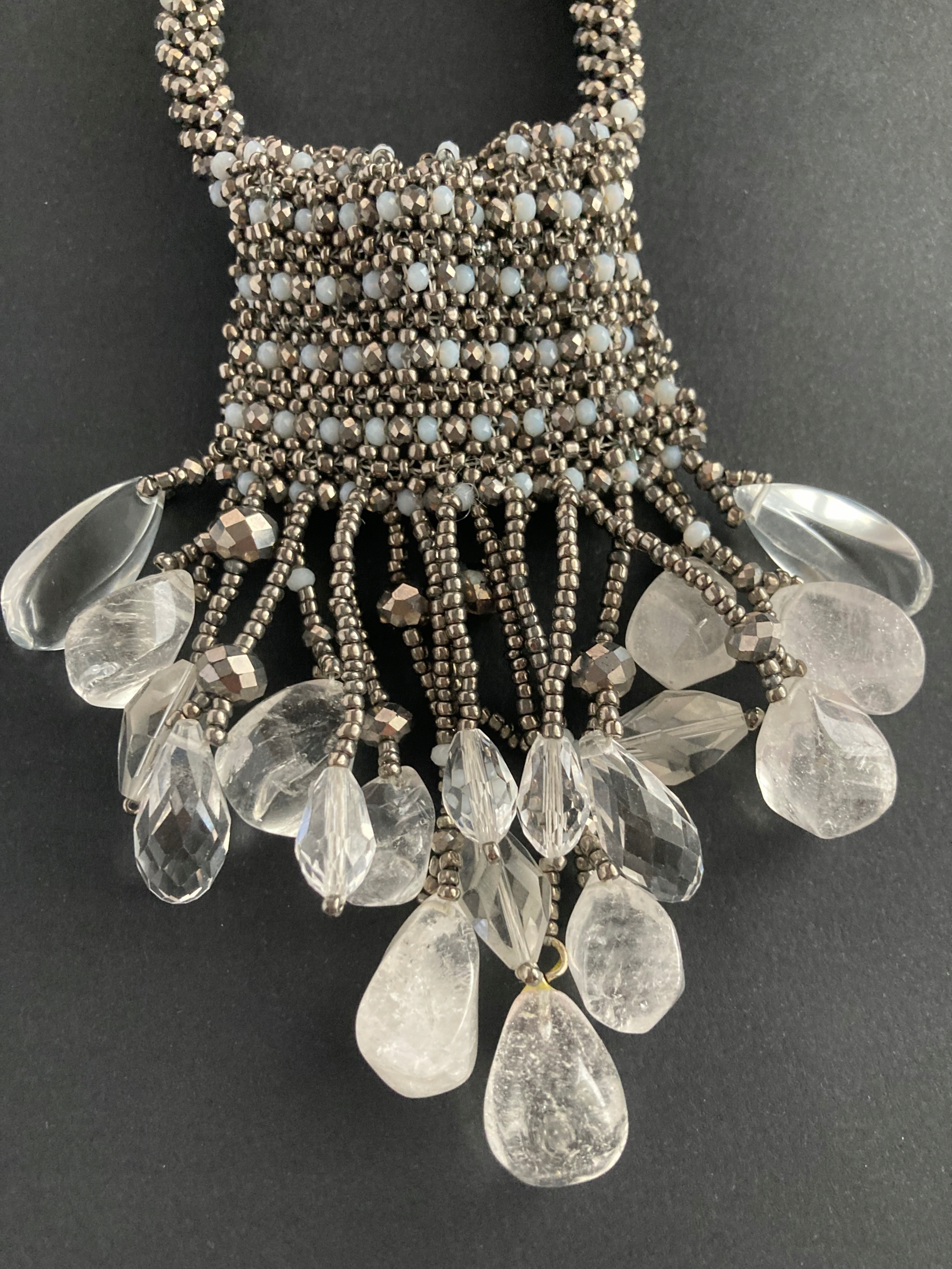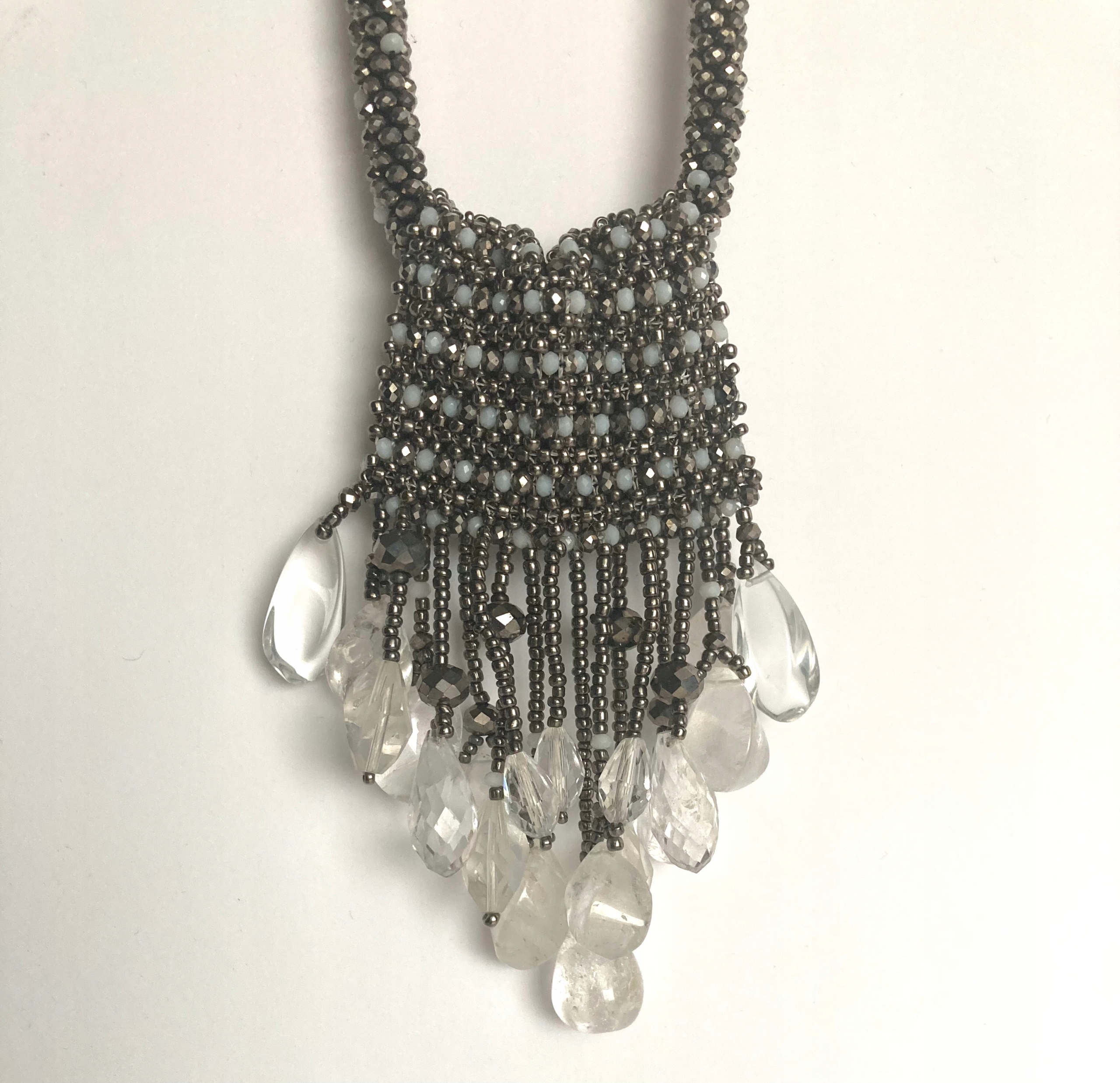 VINTAGE LATA 90. WSPANIAŁY DŁUGI NASZYJNIK Z DUŻĄ OZDOBĄ Z KRYSZTAŁAMI