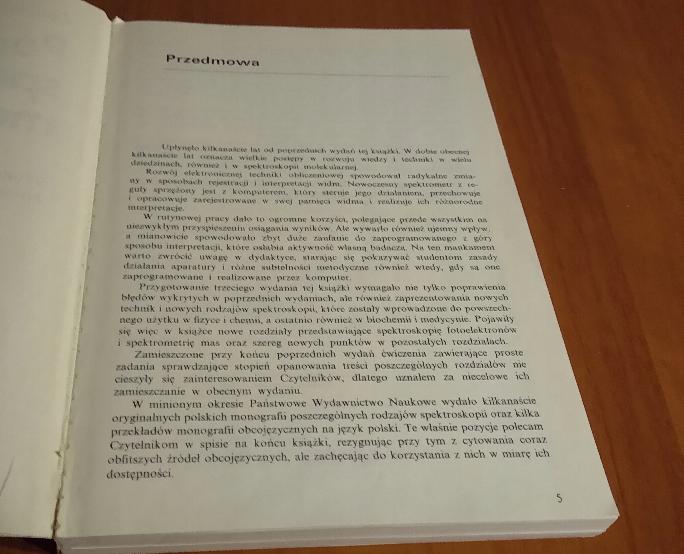 Podstawowy podręcznik do spektroskopii molekularnej. Napisany przystępnie, z dużym talentem dydaktycznym, stylem jasnym i żywym. Omawia ogólne podstawy spektroskopii, różne rodzaje molekularnych widm absorpcyjnych (MW, IR, UV-VIS) i rezonansowych (NMR, EPR), widma ramanowskie, spektroskopię fotoelektronów i elektronów Augera, spektrometrie mas oraz metody spektralne z transformacja Fouriera. Z książki mogą korzystać studenci chemii, fizyki, biologii oraz pracownicy laboratoriów badawczych stosujący metody spektralne.