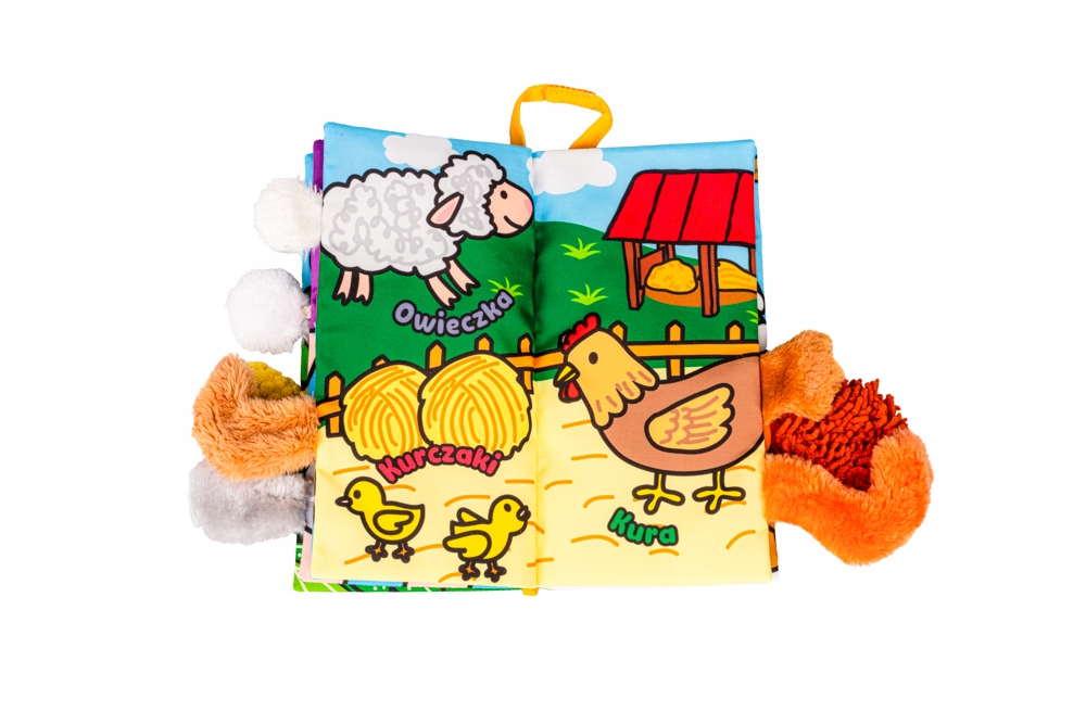 Miękka książeczka z puchatymi zwierzątkami zapewni najmłodszym wesołą zabawę. Na każdej ze stron znajdziemy innego zwierzaka wraz z jego polską nazwą. Zróżnicowane faktury ogonków zwierzątek, które wystają z książeczki, uatrakcyjnią zabawę, stymulując przy tym zmysły wzrokui dotyku dziecka. Podobnie jak szeleszcząca okładka, która z pewnością zaciekawi przeznaczony dla dzieci od dnia narodzin. Cechy produktu: książeczka w języku polskim,szeleszcząca okładka,zróżnicowane faktury materiałów (ogonki),pętelka na rzep do przyczepienia w wybranym miejscu,wiek: 0+.
