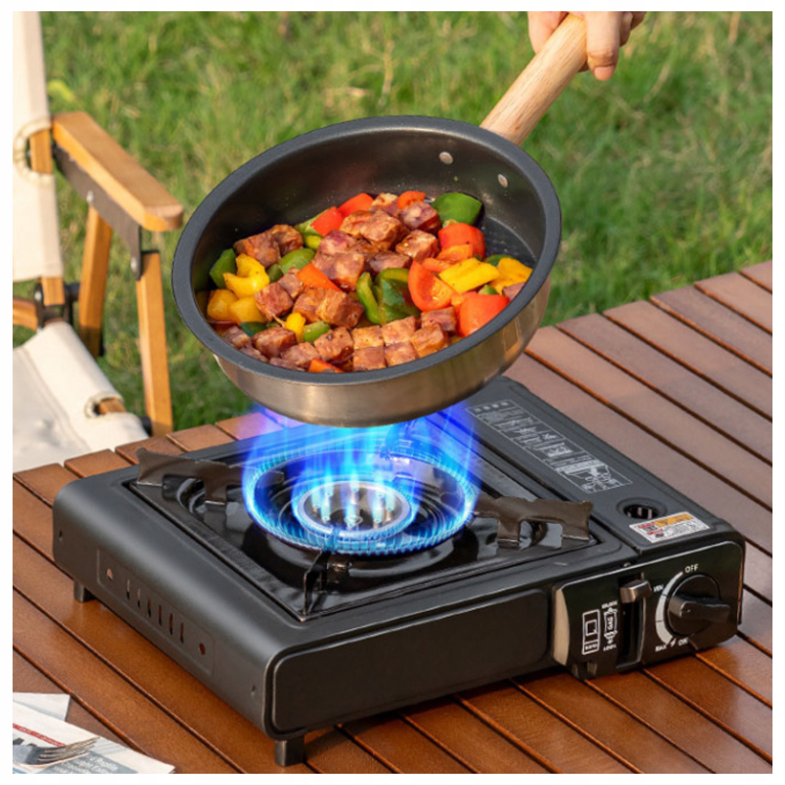 Kuchenka została zaprojektowana z myślą o mobilności — zajmuje niewiele miejsca, łatwo ją przenosić i przechowywać. Jest lekka, poręczna, a dzięki metalowej obudowie świetnie sprawdza się na kempingach, nad jeziorem, na rybach czy podczas górskich wyjazdów.