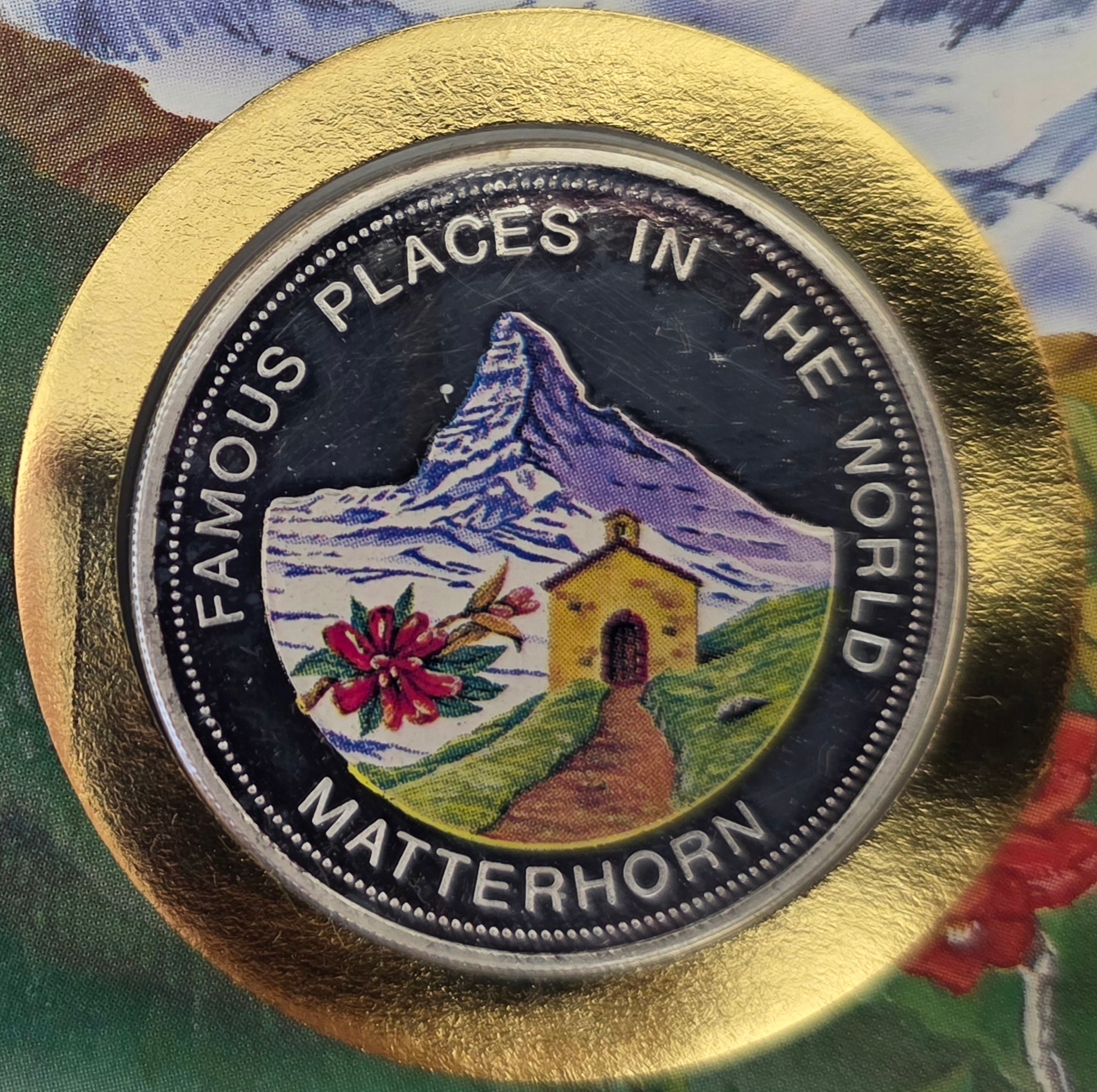 Oferuję list numizmatyczny z monetą upamiętniający jeden z najbardziej rozpoznawalnych szczytów na świecie – Matterhorn, położony na pograniczu Szwajcarii i Włoch, w Alpach Pennińskich. Okaz wyposażony jest w: