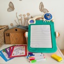Szukasz zabawki, która będzie nie tylko bawić, ale również uczyć? Oto wyjątkowa edukacyjna tablica 2w1 marki WOOPIE – kreatywne centrum zabawy dla dzieci. Zabawka łączy funkcję tablicy do rysowania kolorowymi pisakami oraz planszy do układania klocków typu Tetris. Tablica do rysowania zawiera 8 flamastrów, gąbkę do zmazywania oraz 18 dwustronnych zmazywalnych kart do kolorowania lub pisania. Druga strona tablicy to zabawna układanka Tetris która zaciekawi każde dziecko, rozwinie wyobraźnię i kreatywne myślenie. Kolorowe klocki można układać pionowo lub na płasko tworząc ciekawe figury i obrazki lub oddzielne budowle 3D. Zabawę umilą 4 wbudowane przyciski z muzyką. Analogiczny zegar na obudowie pomoże z nauką odczytywania godziny.