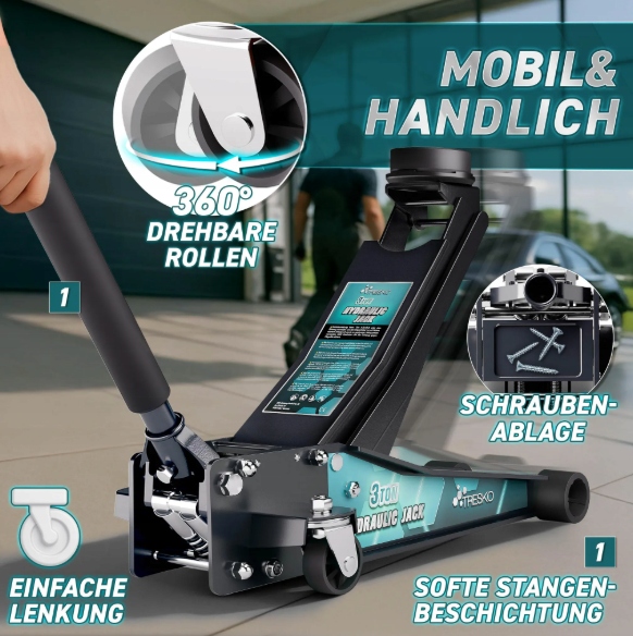 Zadbaj o bezpieczeństwo i wygodę podczas każdej naprawy lub wymiany opon. Hydrauliczny podnośnik TRESKO o udźwigu 2,5 tony to niezawodne narzędzie do użytku domowego i warsztatowego – idealny zarówno dla właścicieli samochodów osobowych, SUV-ów, jak i aut sportowych o niskim zawieszeniu.