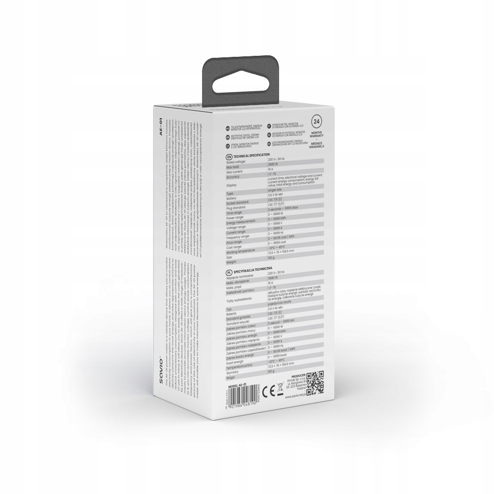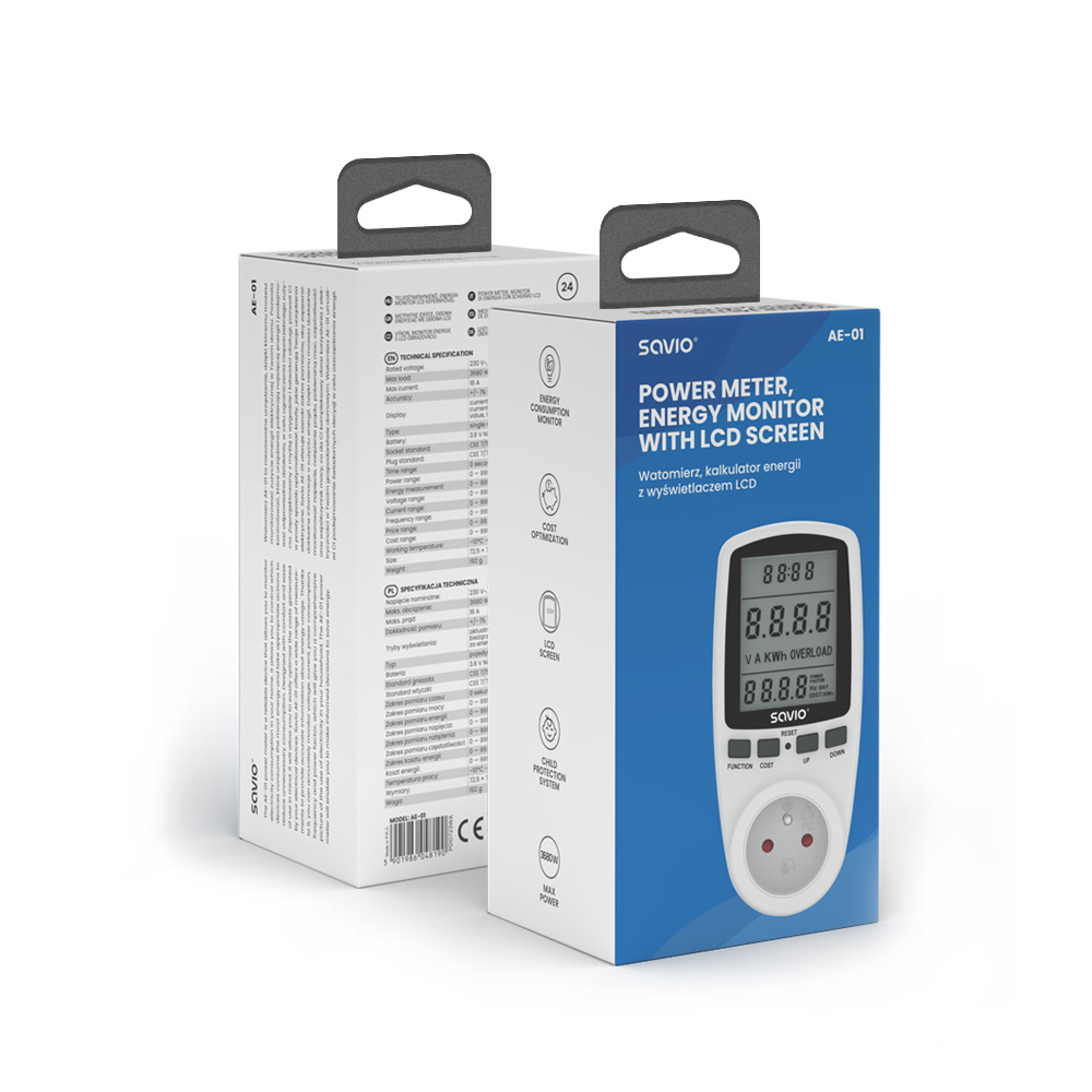 Watomierz, kalkulator energii z wyświetlaczem LCD Savio AE-01, to niezawodne urządzenie, które pozwala Ci monitorować i kontrolować zużycie energii elektrycznej w Twoim domu. Dzięki niemu masz pełną kontrolę nad tym, które urządzenia zużywają najwięcej energii i możesz podejmować odpowiednie działania w celu ograniczenia niepotrzebnego zużycia. Zaprojektowany z myślą o wygodzie i łatwości obsługi, ten watomierz umożliwia Ci optymalizowanie kosztów związanych z użytkowaniem urządzeń elektrycznych.