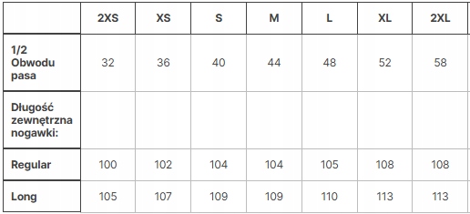 Regulacja długości nogawek: Tak