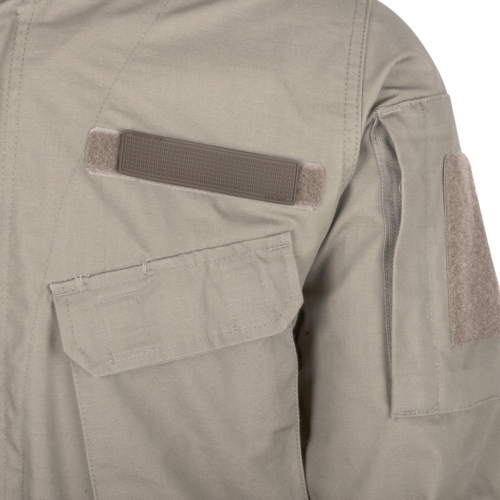 Sześć kieszeni i personalizacja. Bluza CPU posiada zestaw sześciu kieszeni, które pozwalają przenieść istotny sprzęt. Kołnierz ze stójką chroni przed otarciem podczas wielogodzinnego noszenia kamizelki i zawieszonego karabinu. Panele velcro umieszczone na piersiach i ramionach umożliwiają personalizację i łatwe mocowanie dodatkowych akcesoriów.