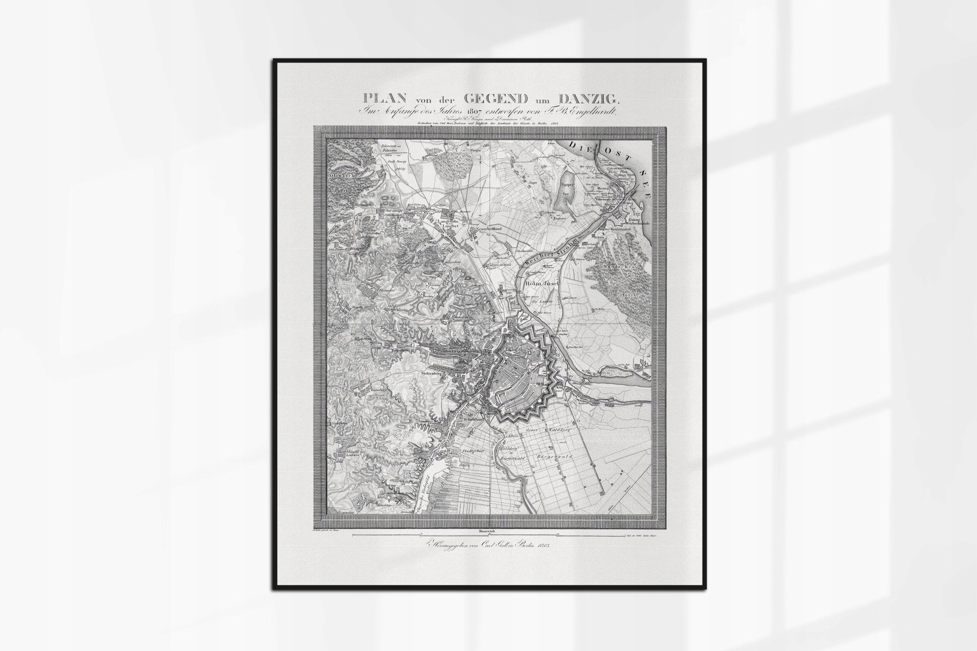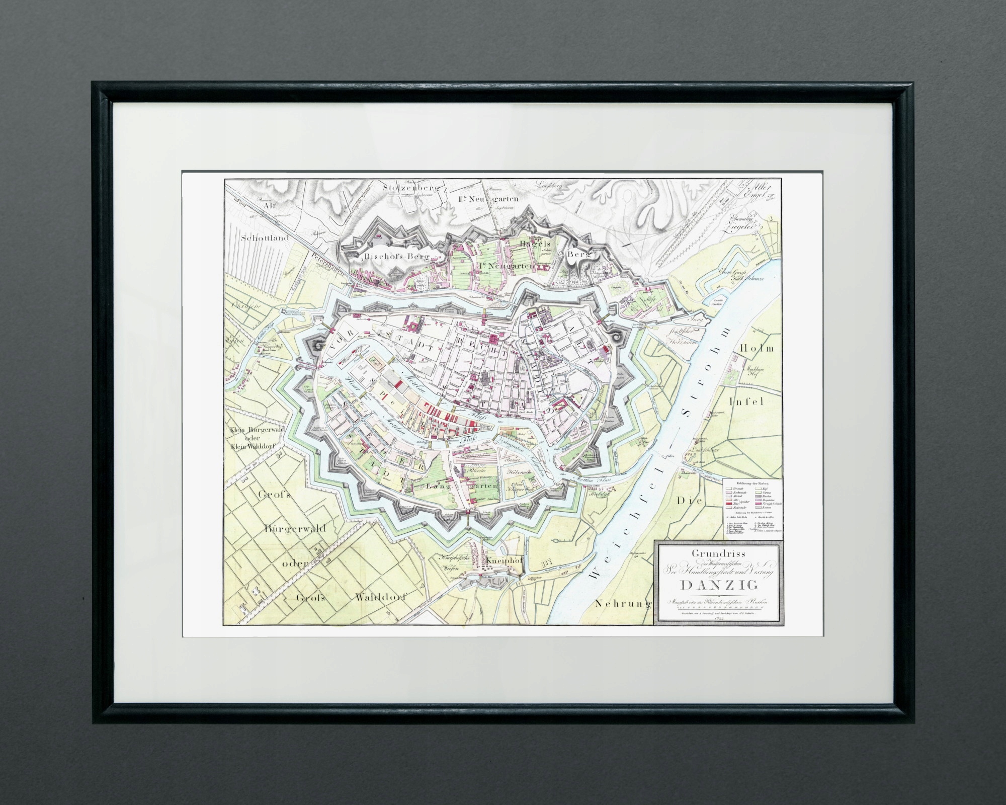 Название Gdańsk Danzig 1807 plan miasta piękna stara mapa REPRINT 75x61