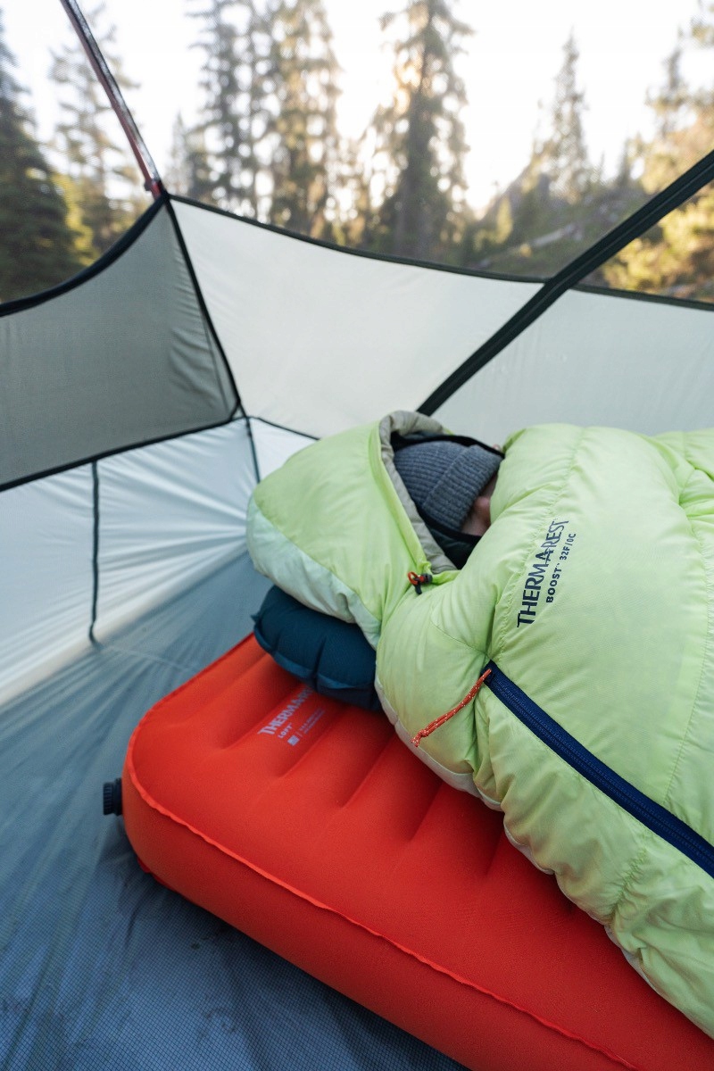 Czterosezonowy dmuchany materac o pionowych ściankach i nieco wgłębionym kształcie. Powierzchnia materaca jest wykonana z rozciągliwego materiału, co sprawia, żejest on miększy niż inne materace turystyczne wykonane z nylonu.