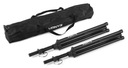Черные сверхмощные анодированные штативы колонки сделаны сталь, которая обеспечивает долговечность и стабильность. Складная конструкция позволяет легко транспортировать и хранение. Ножки штатива и выдвижная часть штатива могут быть заблокированы дружественными к пользователя поворотных ручек, которые также оснащены дополнительной булавкой, предотвращающей внезапное падение колонны. Грузоподъемность одного штатива составляет до 30 кг.