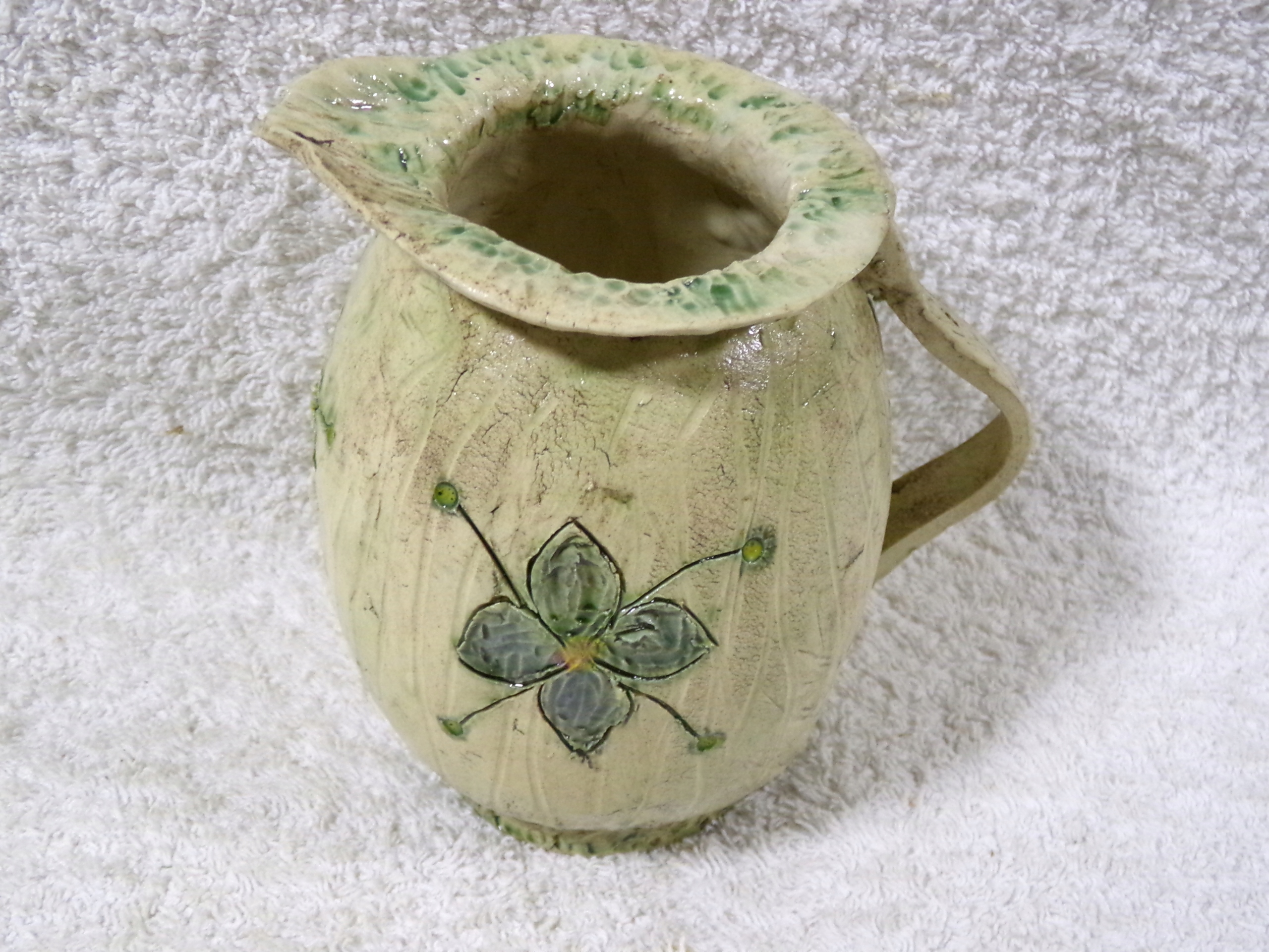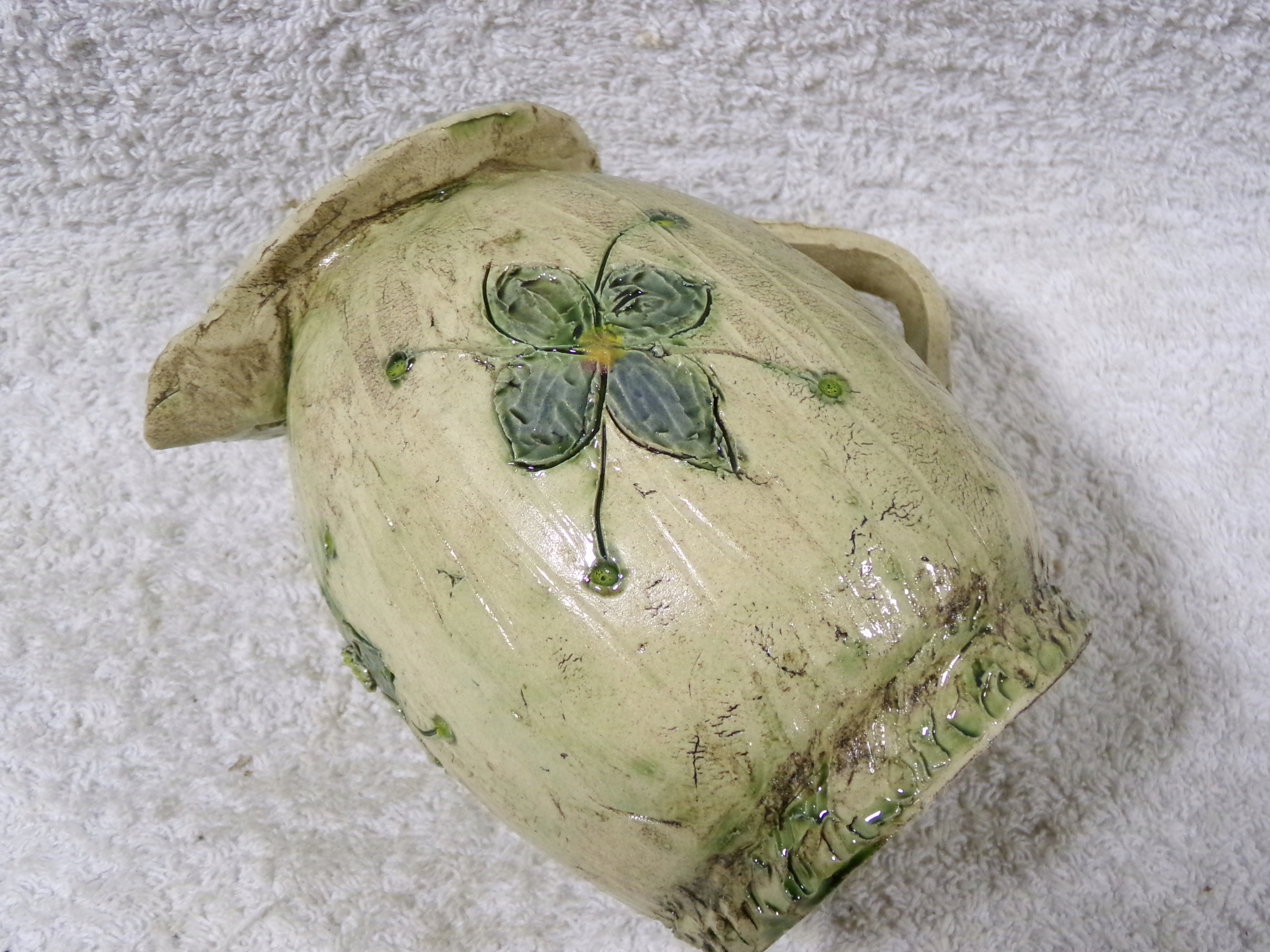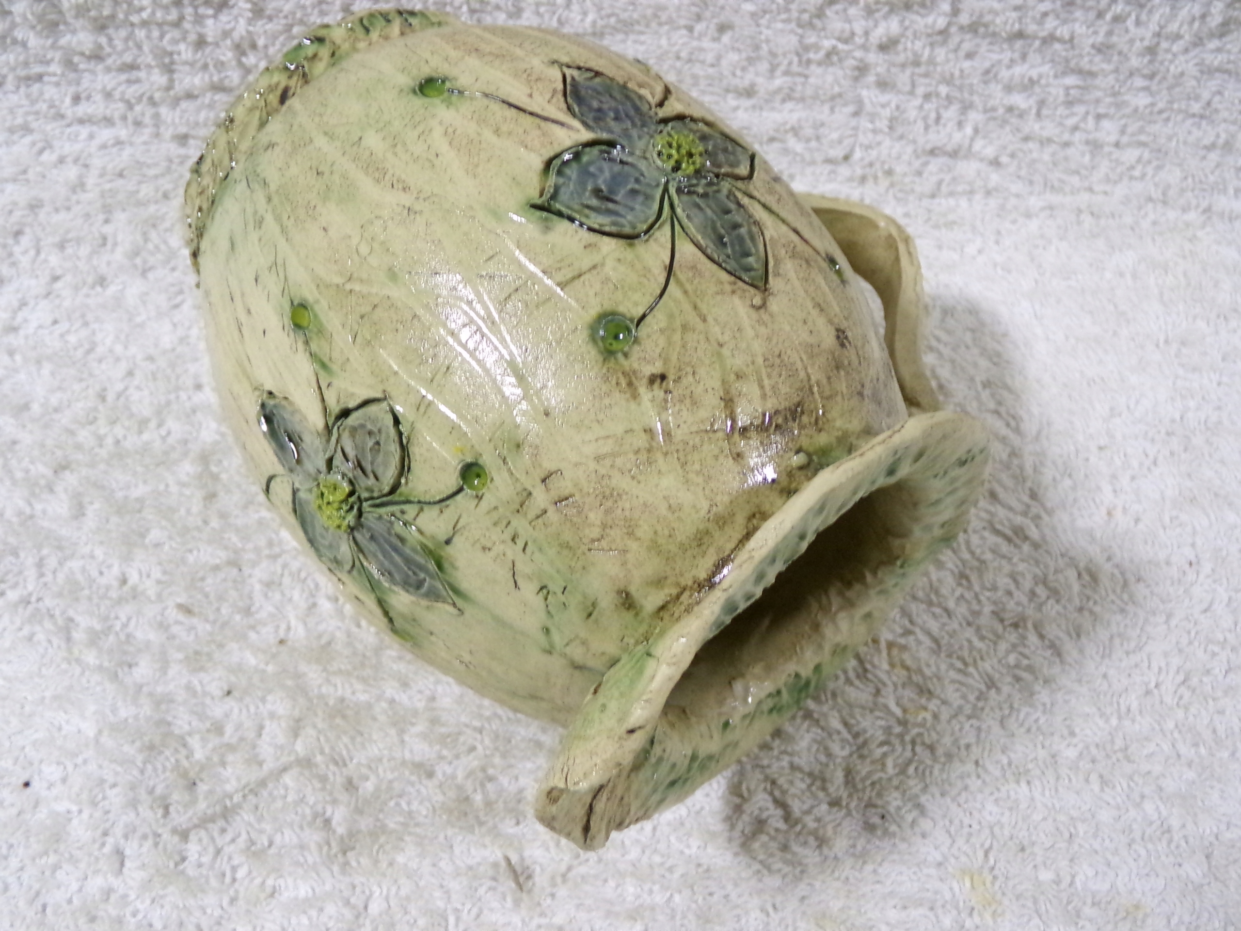 Piękny ceramiczny dzbanuszek ręcznie wykonany o średnicy 11,5x7,5 cm,wysokości 13 cm,wadze 0,47 kg.Stan zachowany bardzo dobry,bez uszkodzeń.