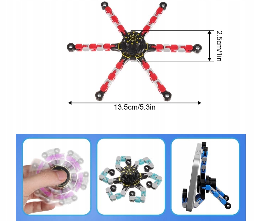 Każdy spinner wykonano z solidnych, trwałych materiałów odpornych na intensywne użytkowanie. Gładkie krawędzie, mocne łączenia i wysokiej klasy łożyska zapewniają płynny ruch oraz długotrwałą, bezawaryjną zabawę. Zabawka jest bezpieczna i wygodna do trzymania w dłoni.