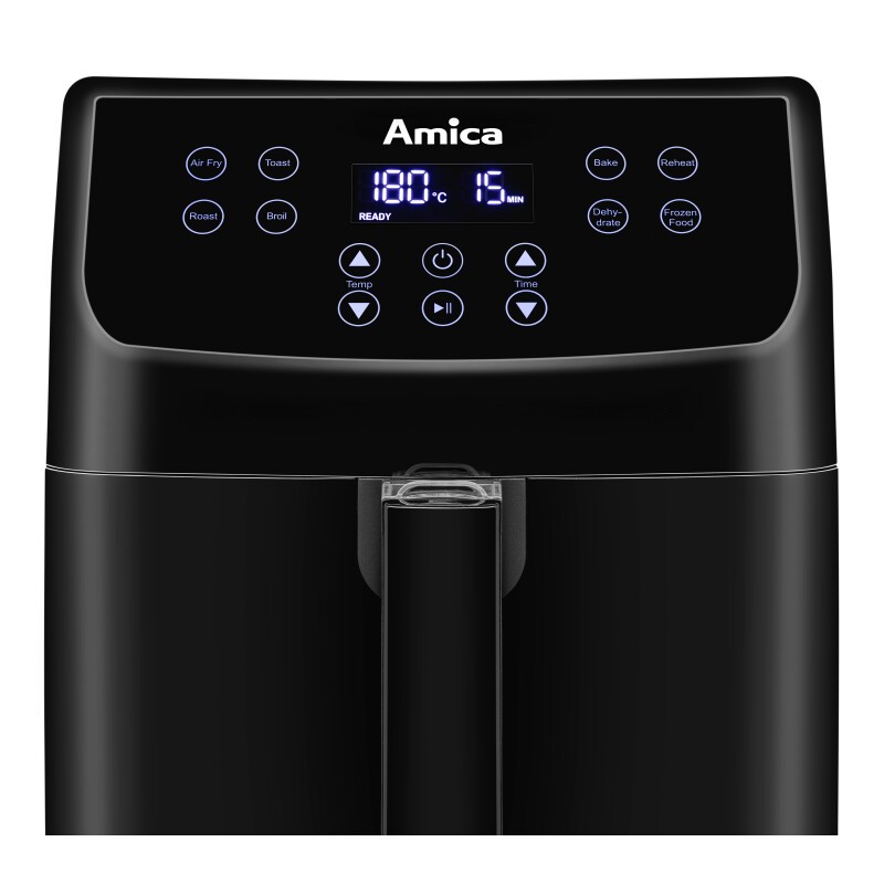 Wielofunkcyjna frytkownica beztłuszczowa marki Amica o mocy 1700W, za pomocą której możesz suszyć, smażyć, grillować, piec, podgrzewać i rozmrażać potrawy.