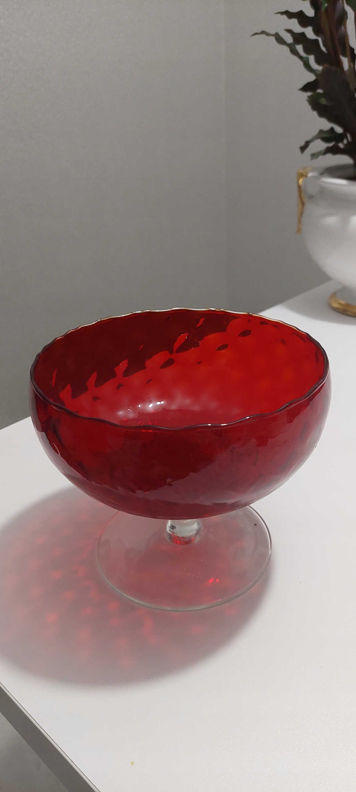 Patera ,owocarka Henriette w bardzo dobrym stanie, kolorowe szkło o wymiarach wysokość 14cm, średnica 16cm.