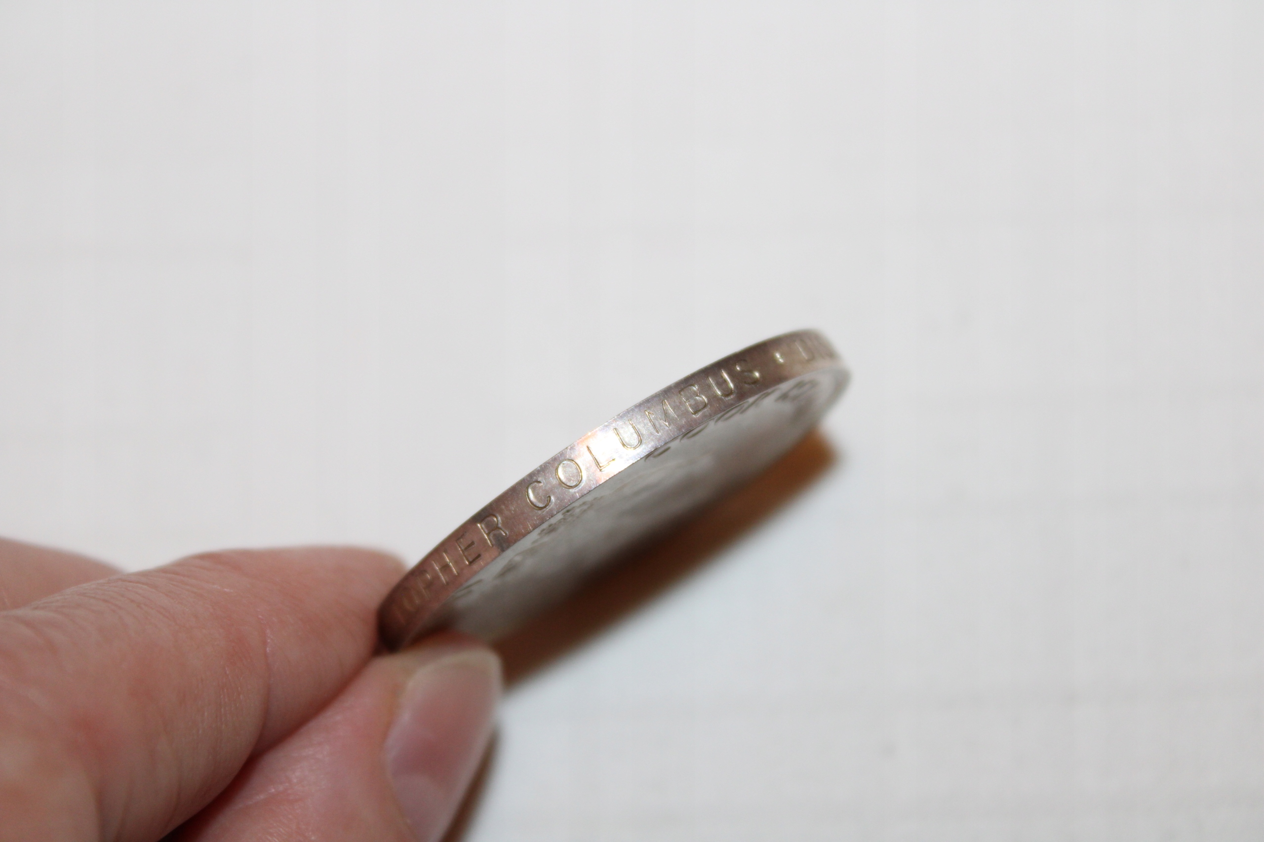Wyprzedaż, oryginalna srebrna moneta kolekcjonerska, 500. rocznica - odkrycie Ameryki, Krzysztof Kolumb. Waga 31,2 grama, średnica 3,9 cm.