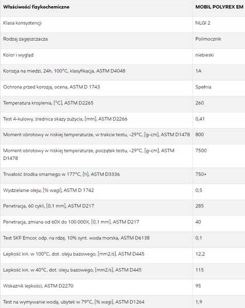 Smary Mobil Polyrex EM są kompatybilne z wieloma smarami litowymi ExxonMobil, jak również z konkurencyjnymi mineralnymi produktami na bazie polimocznika przeznaczonych do zastosowania w silnikach elektrycznych, tak jak jest to określone w ASTM D 6185. Dokładniejsze informacje dotyczące kompatybilności smarów można uzyskać od przedstawicieli firmy Mobil.