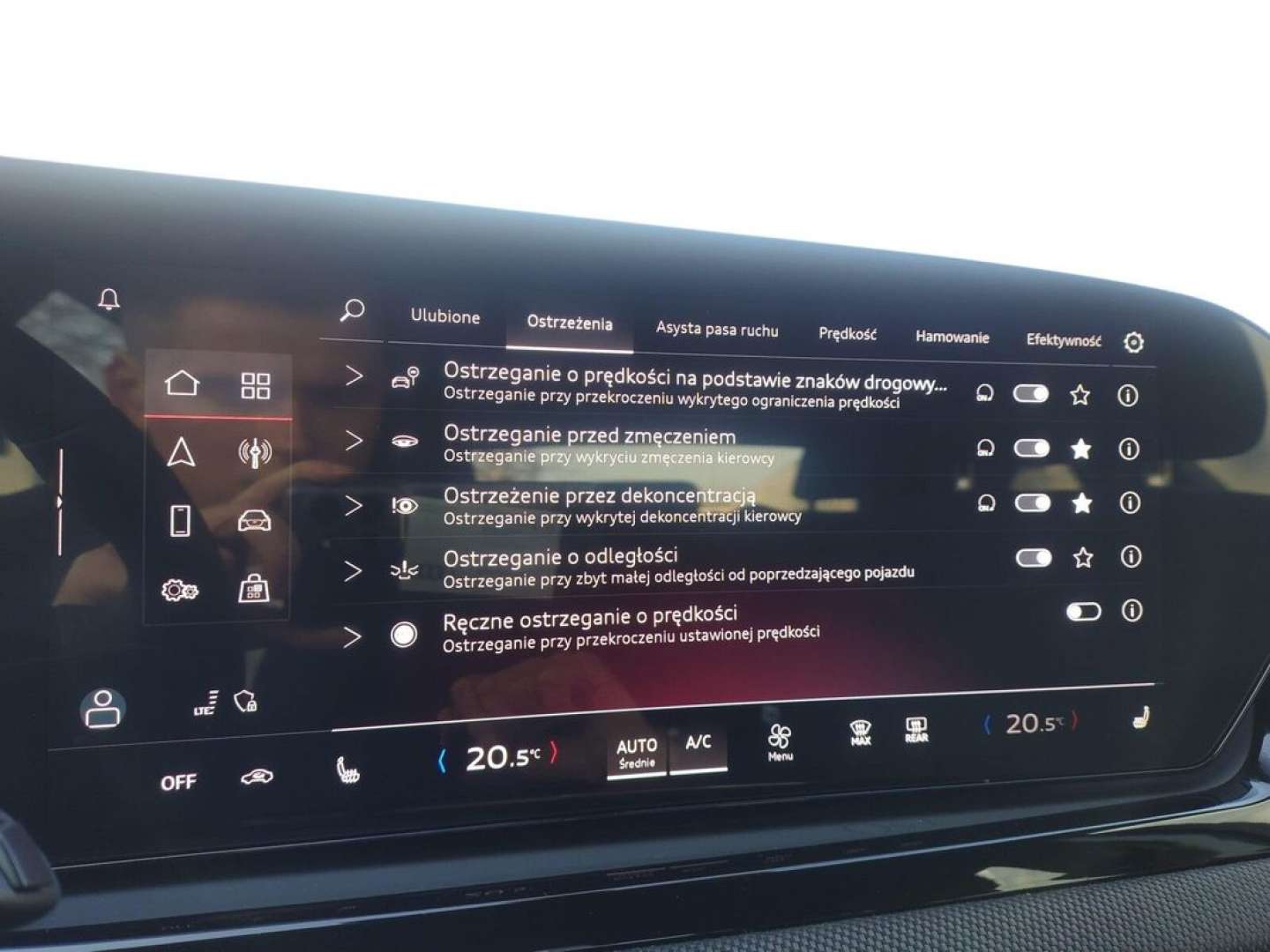 Rozpoznawanie znaków drogowych (kamera)Sygnalizacja obecności osób na tylnych siedzeniach