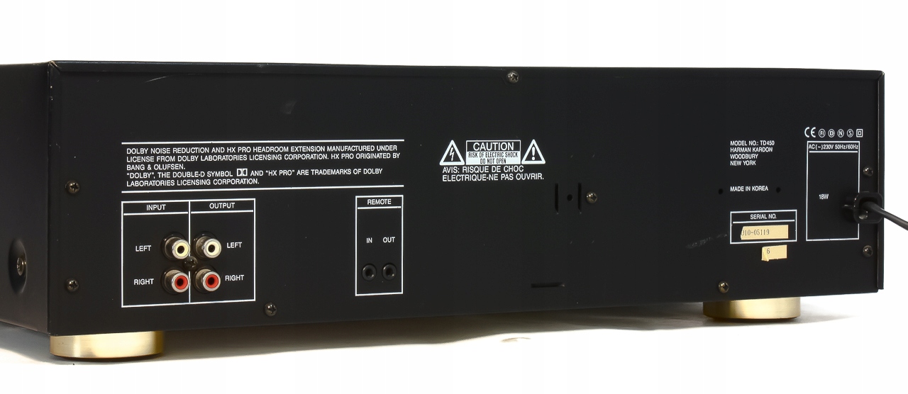 Harman Kardon TD 450 to vintage deck kasetowy o jakości transkrypcji CD z lat 1995-2001, wyposażony w 3 głowice (hard permalloy), szufladę na kasetę jak w odtwarzaczu CD oraz zdalne sterowanie. Oferuje Dolby B/C/HX Pro, MPX filter, funkcję synchronizacji z CD oraz wyszukiwanie muzyki, ceniony za solidną konstrukcję i wysoką jakość dźwięku w retro systemach Hi-Fi lub dla kolekcjonerów. Zapraszam do zakupu!